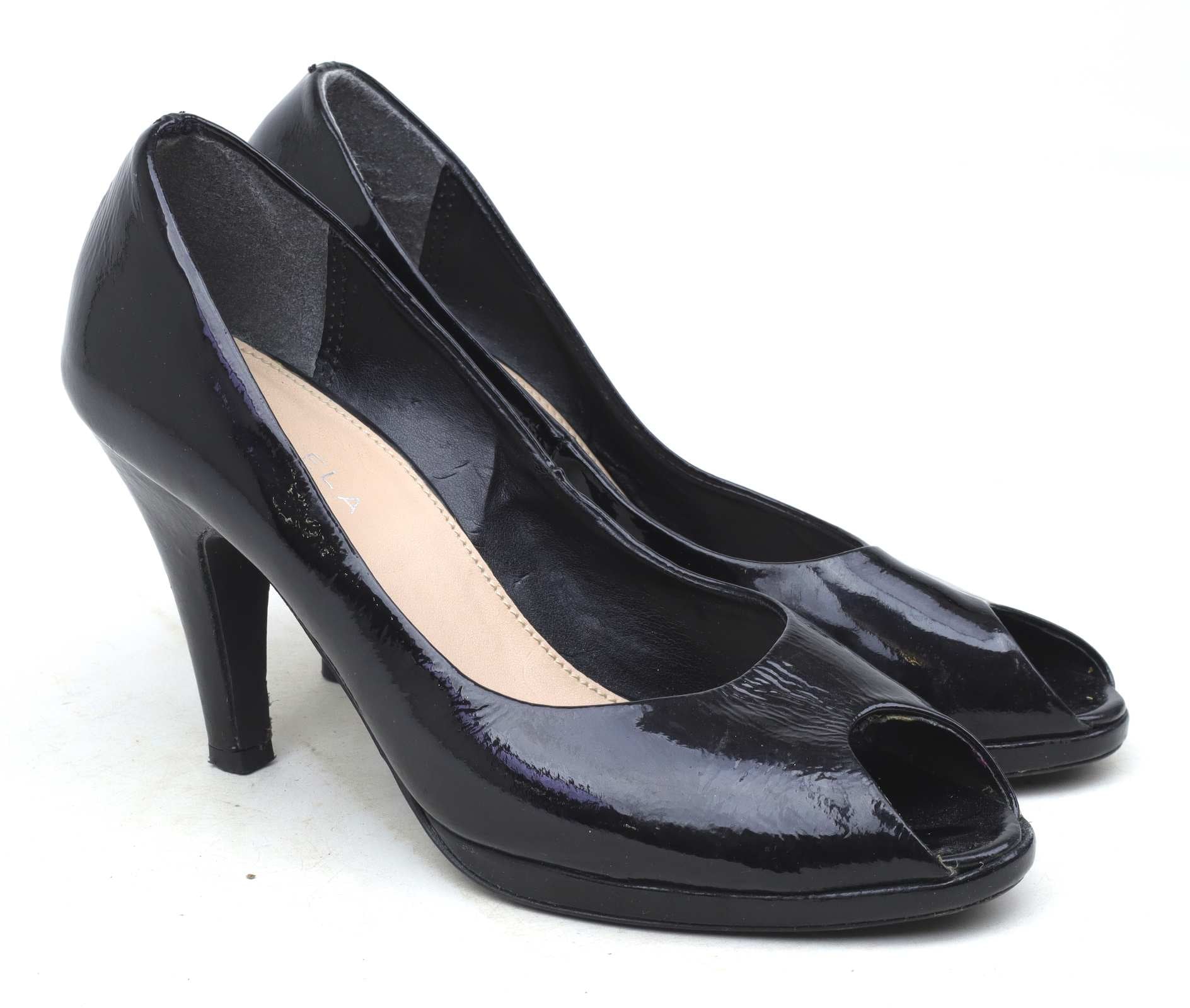 Womens EU Size 37 Black Leather Patent Court Shoes