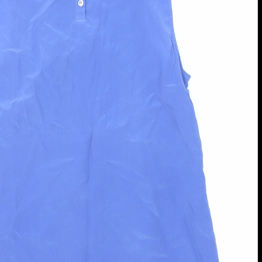 Womens Blue Silk Basic Tank Size 12 Round Neck