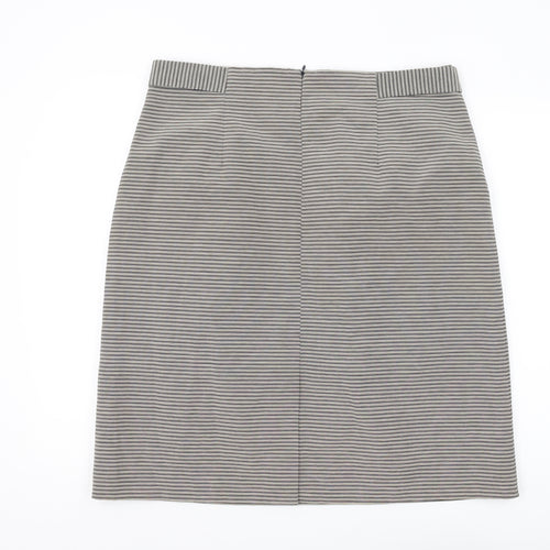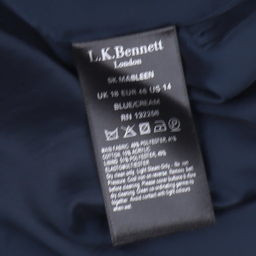 Elevate your professional wardrobe with this sophisticated L.K. Bennett pencil skirt, designed for the modern woman. Crafted from a premium blend of polyester, cotton, and elastane, this knee-length skirt offers both comfort and a tailored fit, ideal for your office or business meetings. The subtle blue striped pattern combines elegance with a hint of modern edge, ensuring you'll turn heads wherever you go. Featuring button accents and a secure zip closure, this stylish piece is both practical and chic. Fully lined for your comfort, it offers a mid-rise fit that complements your figure beautifully. Whether you're pairing it with a blouse for work or a casual top for a more relaxed look, this versatile skirt is a wardrobe must-have. Pristine in condition, with no visible signs of wear or damage, it's ready to become a staple in your collection. Embrace timeless fashion and order today to add this exquisite L.K. Bennett skirt to your ensemble.
