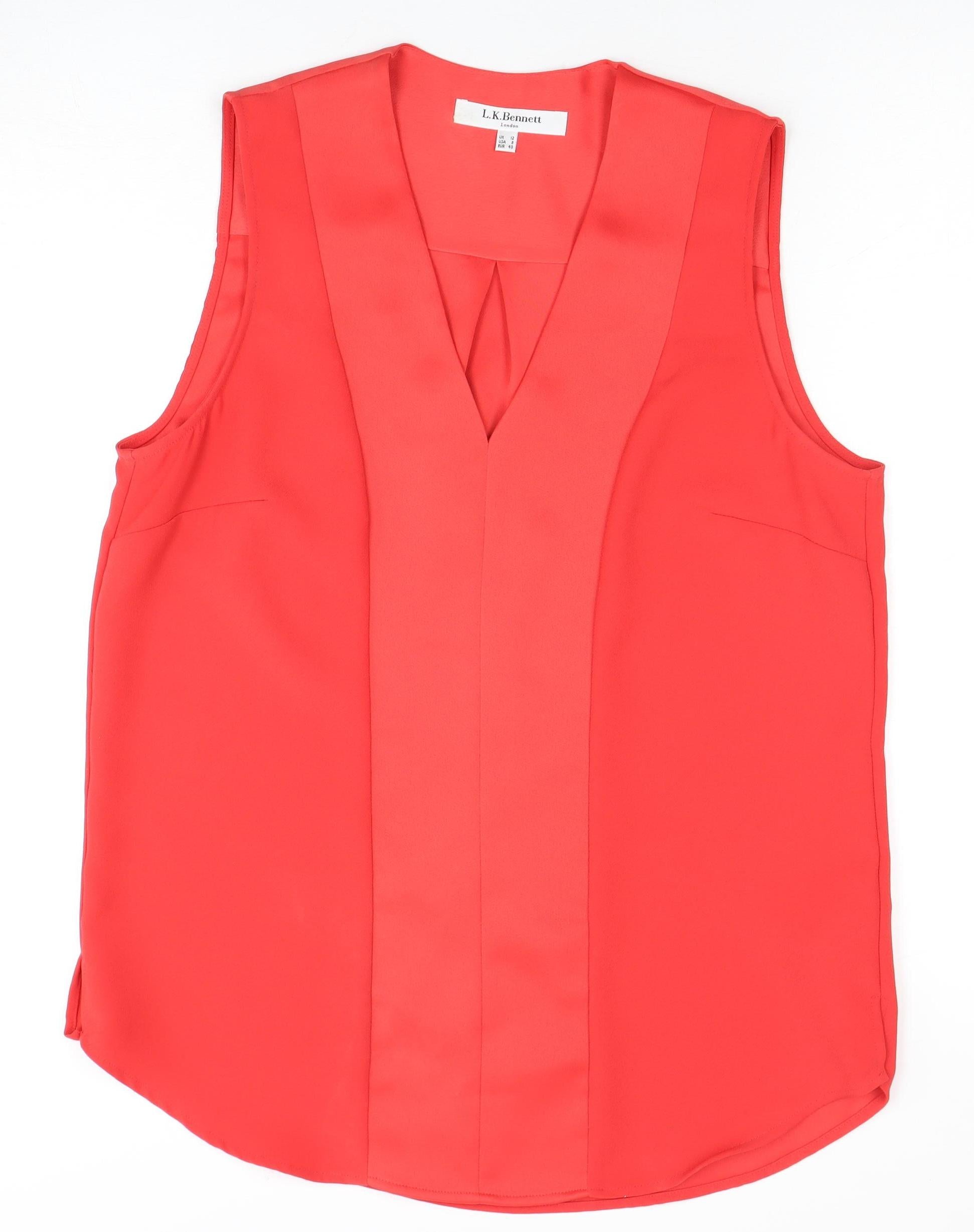 Elevate your wardrobe with this stunning L.K. Bennett top in a vibrant red hue, perfect for adding a pop of colour to your ensemble. Designed with a sleek, sleeveless silhouette, this top is ideal for warm days or layering under a chic jacket. Crafted from 100% polyester, it offers a smooth, lightweight feel against your skin for all-day comfort. This versatile top is a fantastic choice for various occasions, from casual outings to more elegant gatherings. Its regular fit ensures a flattering look, while the classic design can be easily dressed up or down. Pair it with jeans for a laid-back look, or tuck it into a skirt for a polished appearance. In excellent condition, this top shows minimal signs of wear and is ready to become a staple in your collection. Whether you're heading to a brunch with friends or a business casual meeting, this L.K. Bennett top promises to infuse your outfit with a touch of sophistication. Don't miss the opportunity to add this must-have piece to your closet today.