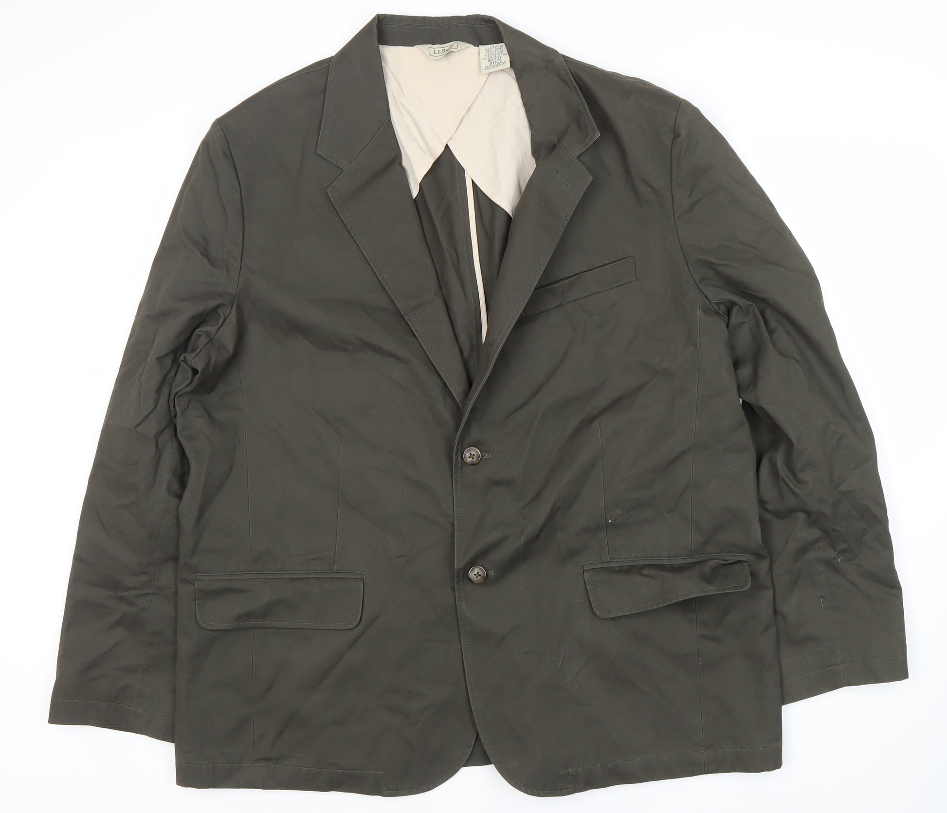 Discover the epitome of casual sophistication with this L.L. Bean Men's Green Blazer, perfect for elevating your wardrobe. Crafted from 100% Cotton, this blazer ensures comfort and breathability, making it ideal for both spring and autumn wear. Its rich green tone adds a versatile touch, suitable for various occasions, whether you're dressing up for a business casual meeting or a relaxed evening out. The blazer features a classic single-breasted design with a two-button front, complemented by a notch lapel and a single-vented back for an elegant silhouette. The jacket also incorporates inner pockets, providing practicality without compromising on style. Made to L.L. Bean's high standards, this piece promises durability and timeless appeal. Pair it with your favourite trousers or jeans for an effortlessly smart look. Despite minor wrinkles from storage, this blazer remains in excellent condition, ready to impress at any gathering. Its regular fit offers comfort while maintaining a sharp profile, ensuring you look your best at all times.