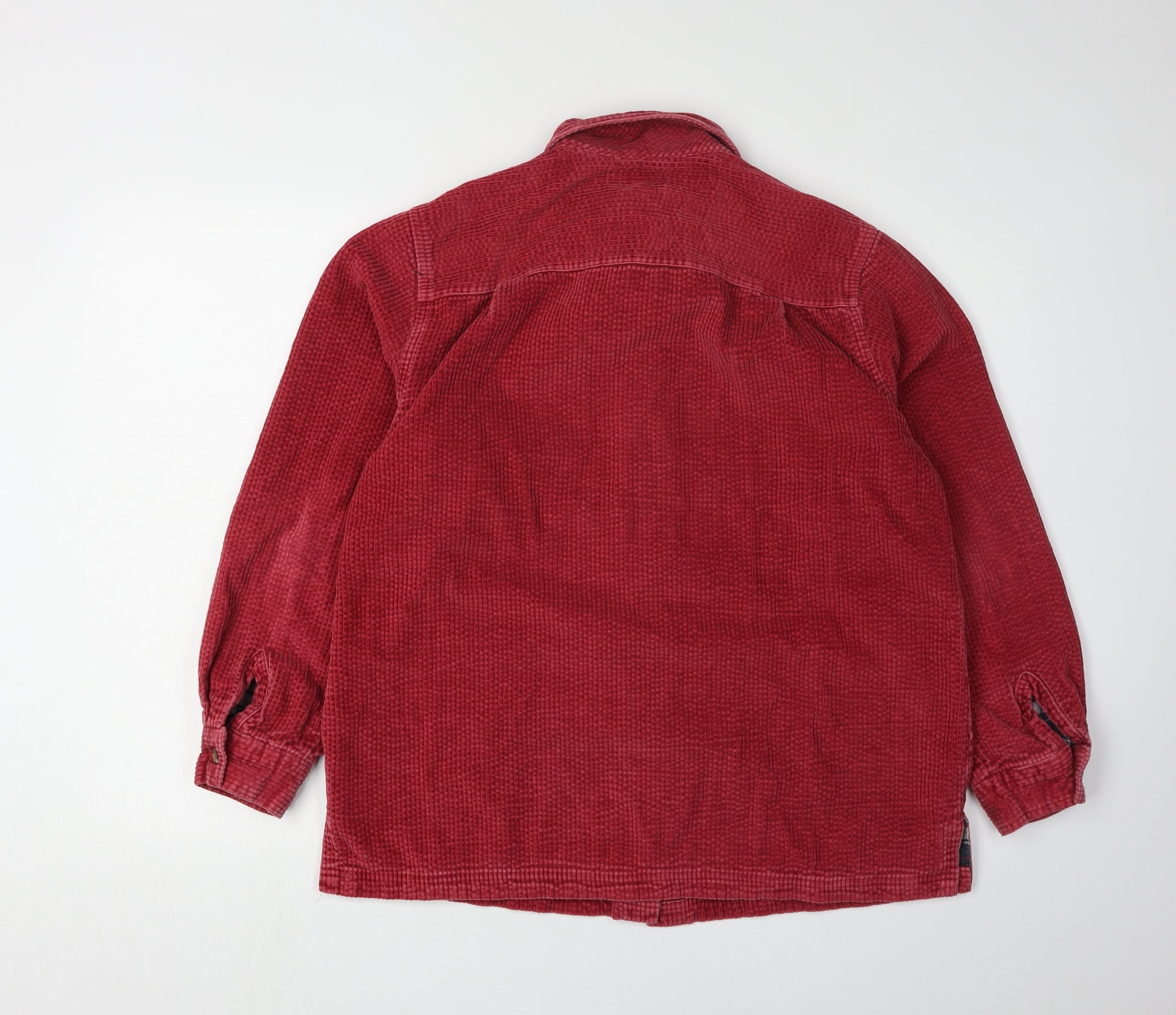 This L.L. Bean men's shirt in small size offers a casual and comfortable style, ideal for autumn and winter wear. Crafted from 100% cotton corduroy, the material ensures warmth and softness, while the classic button-up design adds a timeless appeal. The shirt's rich red colour adds a pop of vibrancy suitable for various casual occasions. Although there's a small tear near the buttons, the piece remains fully functional and adds a touch of rugged charm. Its lined feature provides extra comfort, making it perfect for layering. Machine washable, the shirt allows for easy care. Grab this quality piece at an excellent price and enjoy its lasting style in your wardrobe.