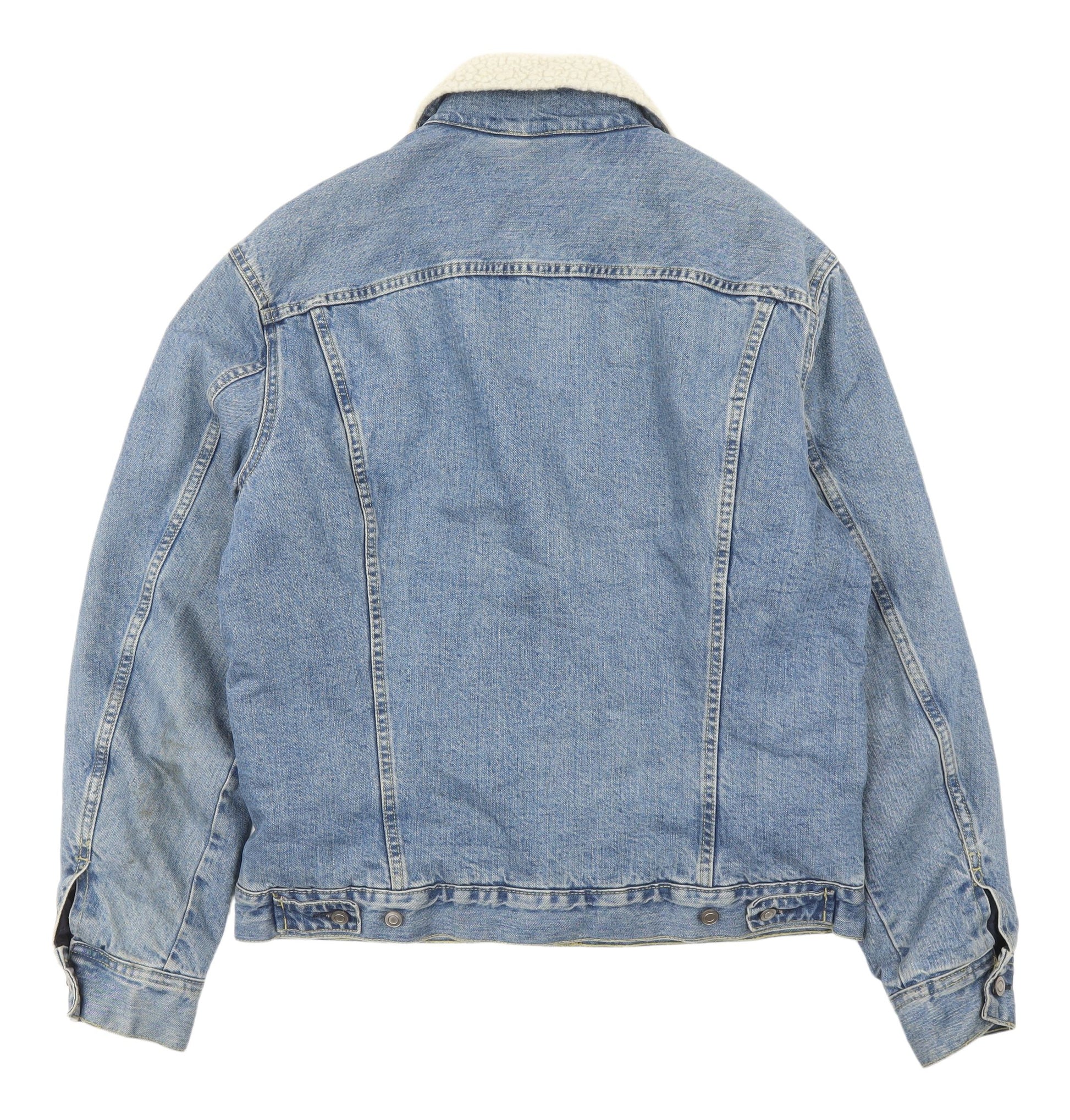 Elevate your casual wardrobe with this classic men's denim jacket from L.O.G.G. Crafted from premium quality cotton, this medium-sized jacket is the epitome of effortless style and comfort. Its timeless blue hue makes it a versatile piece that pairs well with everything from casual tees to cosy sweaters, ideal for both autumn and winter. The jacket features a sturdy button closure and a soft polyester lining, ensuring a comfortable fit while keeping you warm during those chilly days. Its regular fit and short length provide a classic silhouette that's perfect for everyday wear. Accented with a spread collar and durable buttons, this jacket brings a touch of rustic charm and classic appeal. Whether you're heading out for a casual day in the city or enjoying a weekend getaway, this denim jacket is your go-to option for a laid-back, stylish look. With details such as lined and collared features, this jacket combines fashion with functionality, ensuring you stay snug and stylish. Ideal for casual occasions, this versatile piece is a must-have for every man's wardrobe. Available in excellent condition, this jacket shows no visible wear, maintaining its high-quality appearance for a fraction of the price. Don't miss out on this great addition—grab your L.O.G.G. denim jacket today!