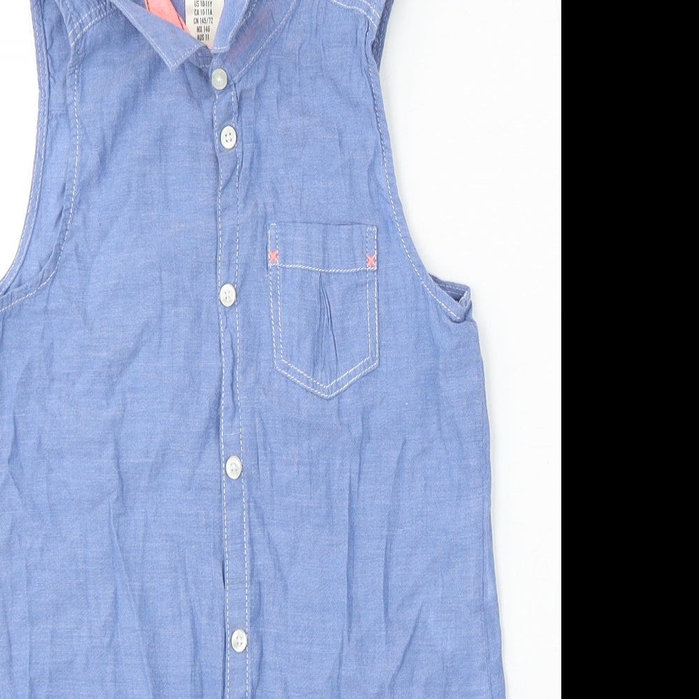 Girls Blue Cotton Basic Tank Size 11 Years Collared Button