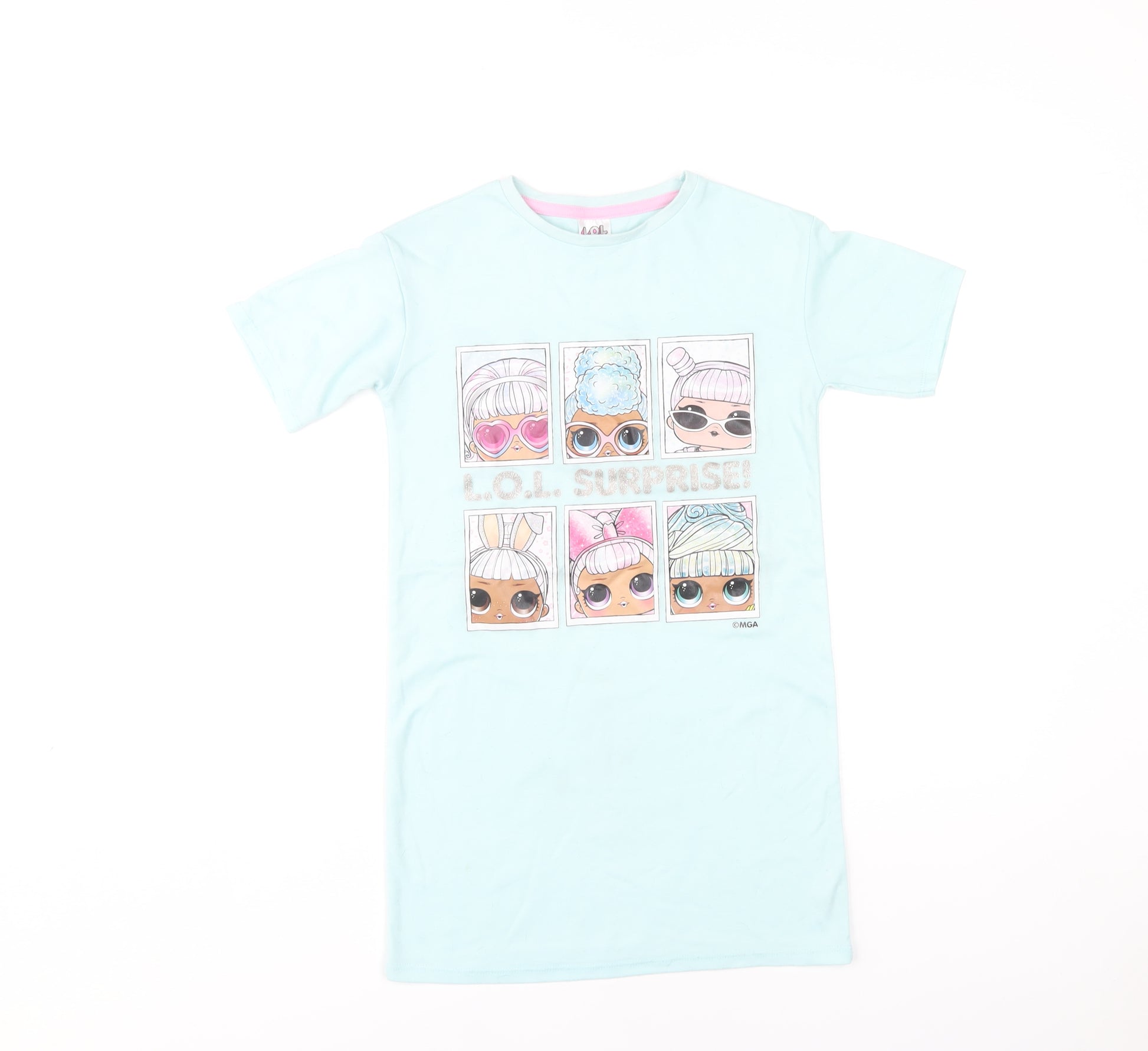 Girls Blue Nightshirt 6-7Y Graphic Print Short Sleeve