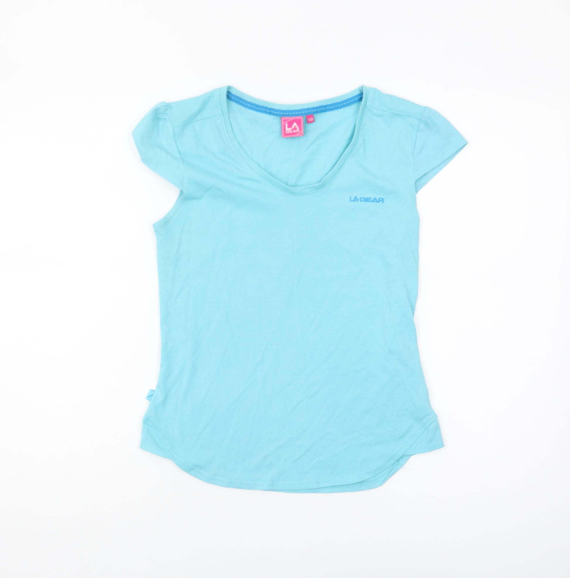 Embrace casual comfort with this LA Gear women's blue T-shirt, perfect for summer outings or casual days. Tailored from a soft blend of polyester and cotton, this breathable tee ensures you stay stylish and comfortable. Its regular fit, V-neck design, and cap sleeves add a touch of effortless chic. Whether paired with jeans or shorts, this T-shirt is a versatile addition to your wardrobe, ideal for any casual occasion.