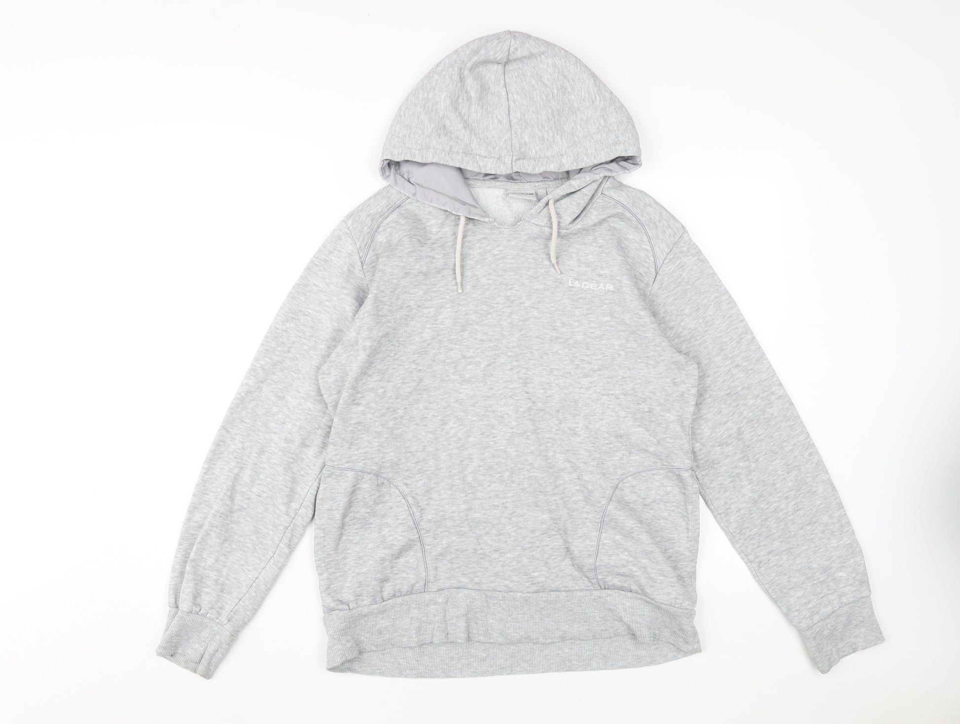 Experience unparalleled comfort with this LA Gear Women's Pullover Hoodie, designed for those who appreciate a blend of style and practicality. Tailored in a versatile grey, this hoodie offers a casual yet chic aesthetic, perfect for the modern woman. The relaxed fit with long raglan sleeves enhances mobility, ensuring ease during day-to-day activities or casual outings. Crafted from a high-quality fleece blend of cotton and polyester, this hoodie promises warmth and softness, making it an ideal choice for autumn and winter seasons.The design features a practical drawstring hood, allowing for adjustable coverage according to your preference, while the absence of intricate patterns maintains a streamlined, minimalist look. With a carefully crafted logo accent, it subtly speaks style without overstatement. The machine washable fabric ensures easy garment care, making it perfect for everyday wear.Offered in a regular UK size 12, this hoodie fits neatly, neither too snug nor too loose, allowing it to complement various body types comfortably. Whether you're lounging at home or heading out for a casual stroll, this LA Gear hoodie offers a relaxed fit that blends both function and fashion seamlessly.Don't miss out on this essential addition to your wardrobe, providing both versatility and style throughout the cooler months.