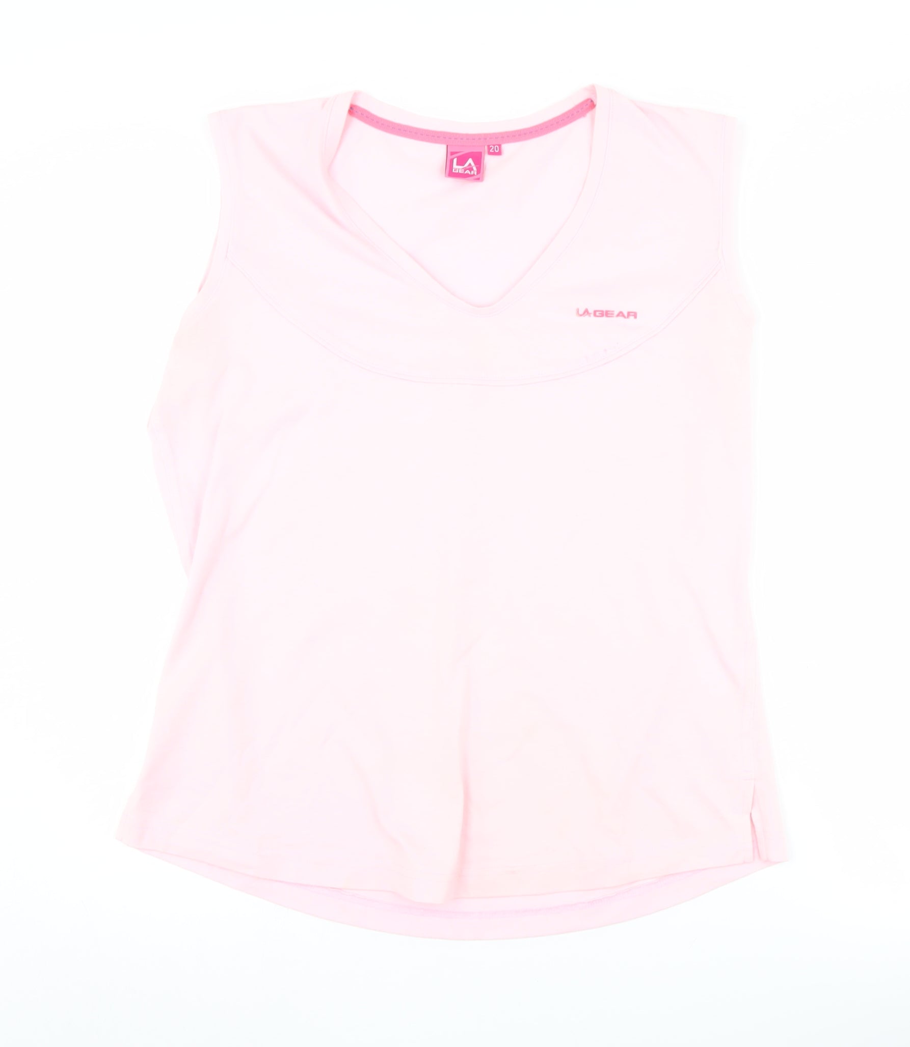 Elevate your casual wardrobe with this LA Gear Women's Pink V-Neck Sleeveless Tank Top. Perfect for a relaxed yet stylish look, this tank top effortlessly combines comfort and style. Crafted with a blend of 65% polyester and 35% cotton, it offers a lightweight and breathable fit, ideal for any season. The soft pink hue adds a feminine touch, making it a versatile addition to any outfit. Designed with a flattering V-neckline, this tank top complements your silhouette while providing a chic, modern look. The sleeveless design ensures ease of movement, perfect for layering or wearing on its own during warmer days. Although pre-loved, this top is in excellent condition with no visible signs of wear, ensuring it maintains its fresh, vibrant appearance. Pair it with jeans for a casual day out or dress it up with a skirt for a more polished ensemble. Whether you're heading to a brunch, a day at the park, or just relaxing at home, this LA Gear tank top is your go-to choice for effortless style. Add this to your collection for a fashionable, casual look that's easy to wear and easy to love.