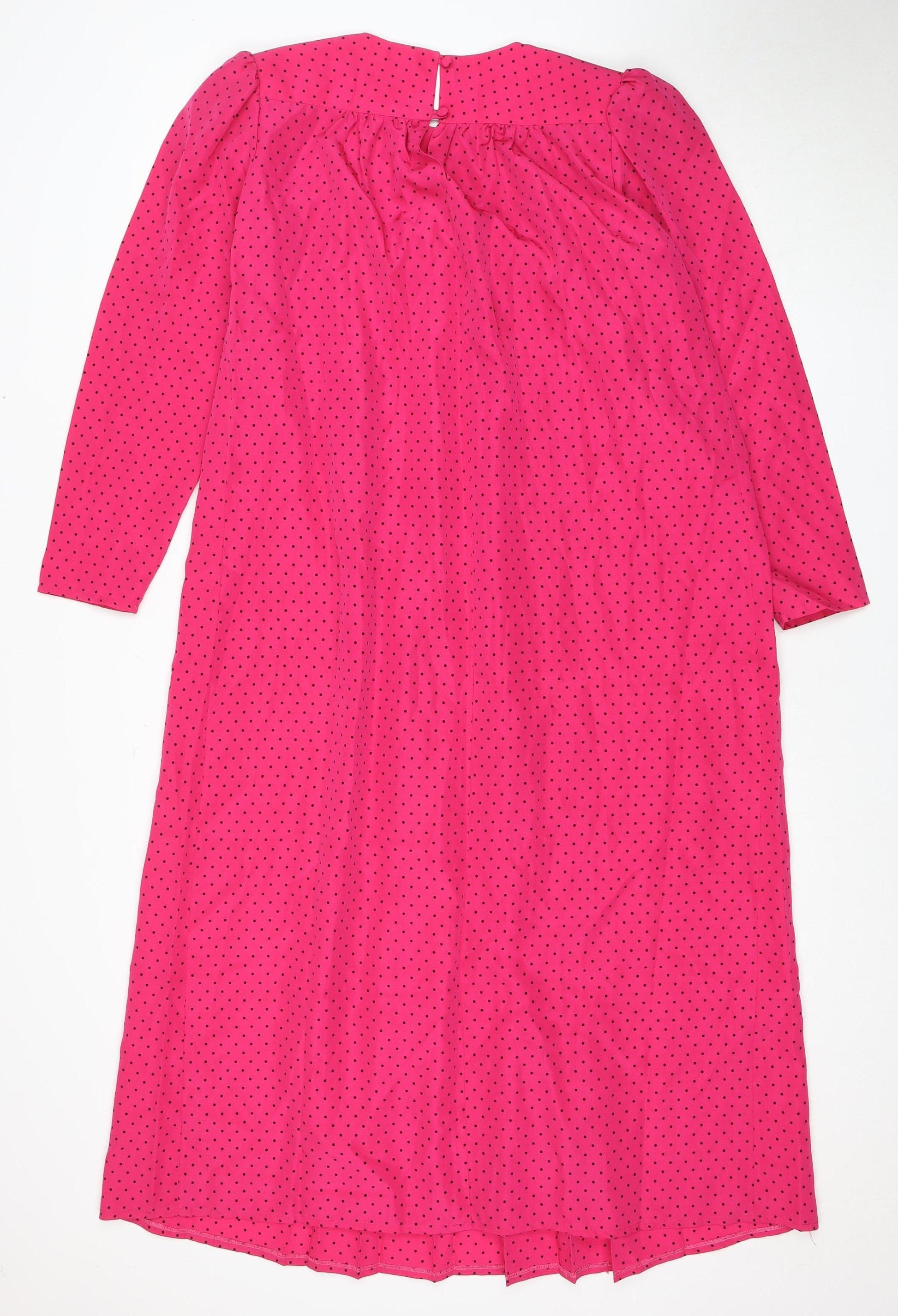This charming La Mama maternity dress is perfect for the stylish mother-to-be. Designed with elegance and comfort in mind, this dress features a delightful pink hue adorned with a playful polka dot pattern. Crafted from quality polyester, it ensures a soft and smooth feel against the skin. The round neckline and 3/4 sleeves provide a flattering silhouette suitable for various occasions. Although vintage-inspired, the versatile style aligns with modern maternity fashion trends. Easy to care for with a hand wash, it promises durability and lasting quality. With no visible signs of wear, this piece is in excellent condition, making it a delightful addition to your maternity wardrobe.