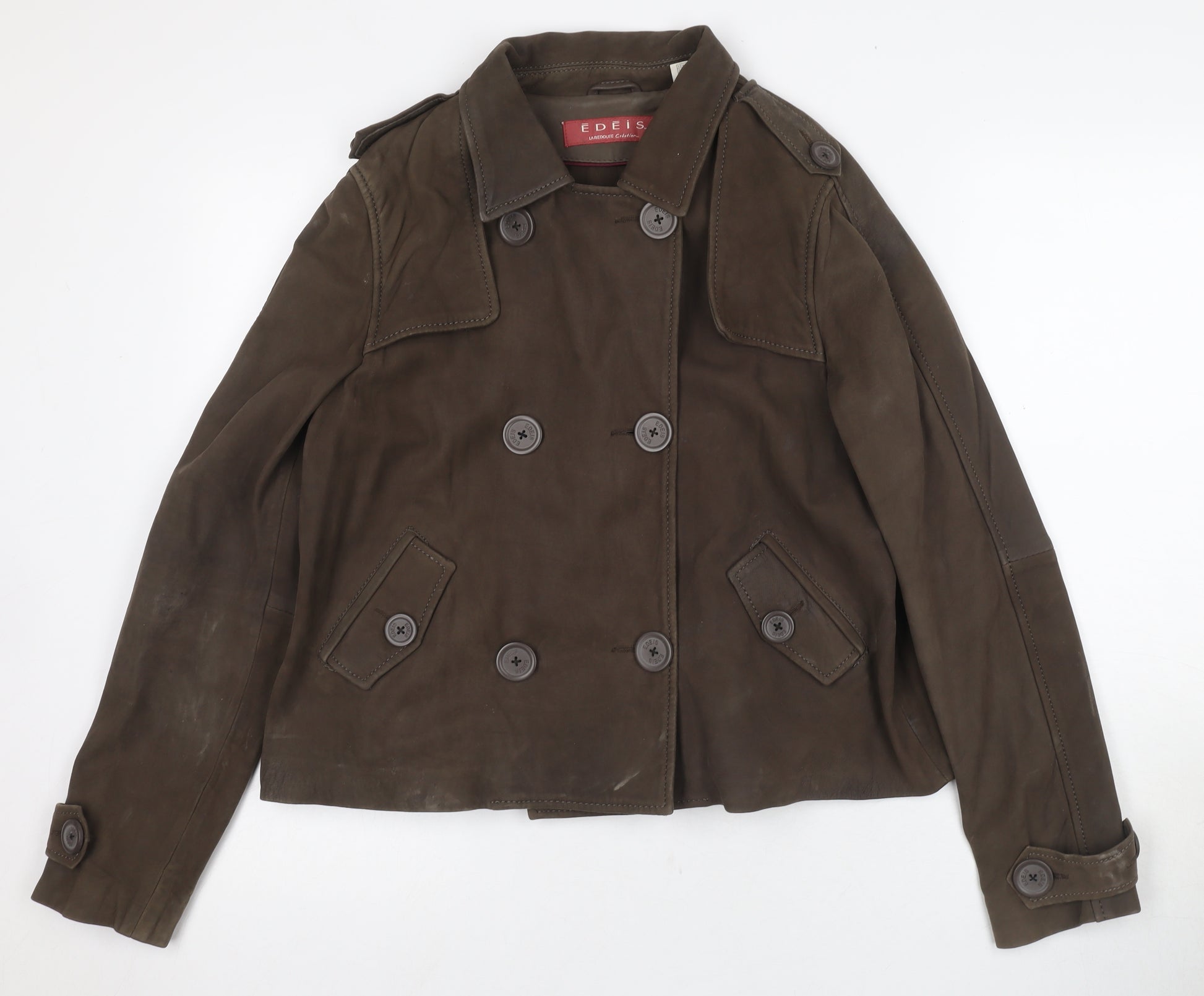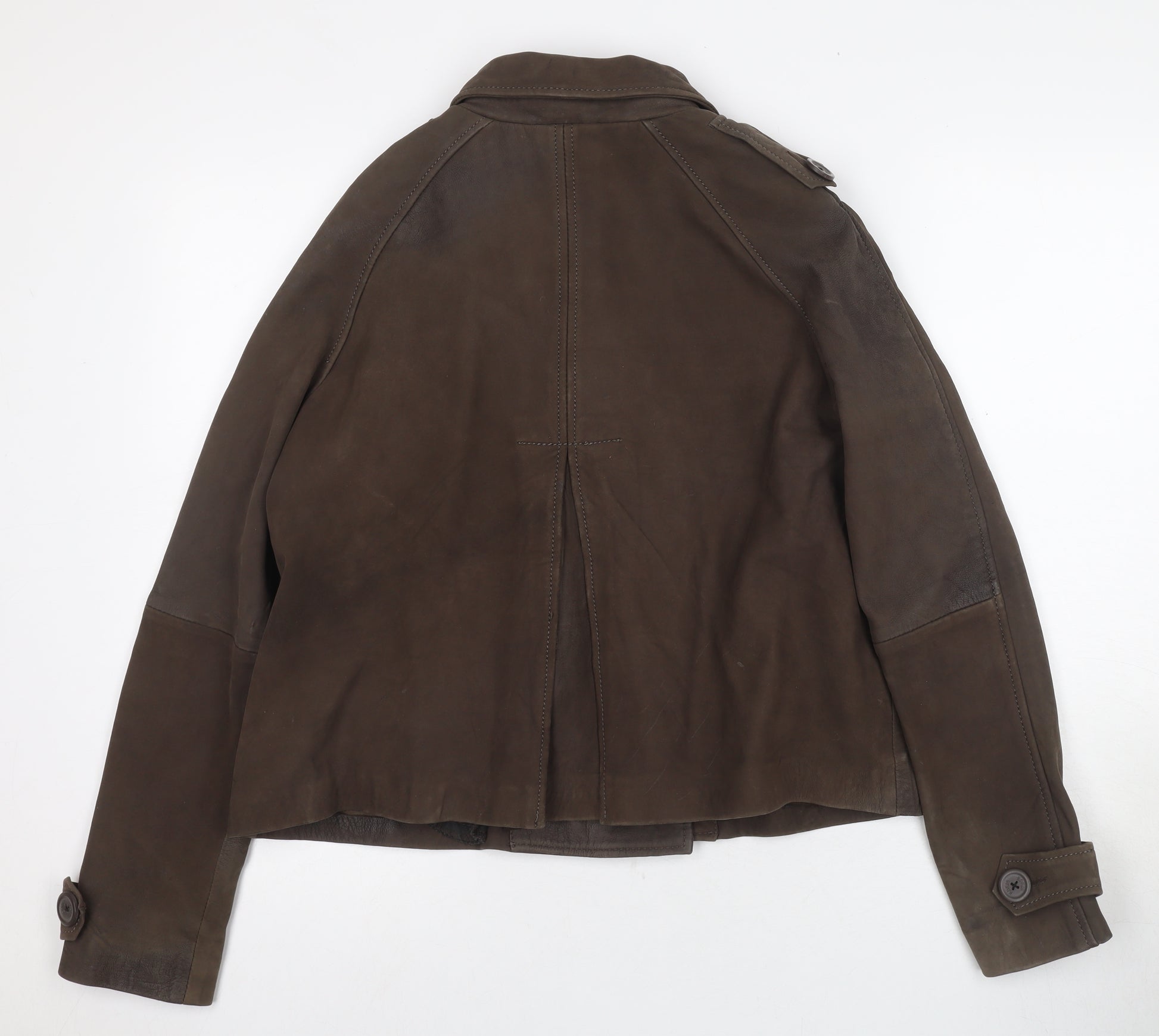 Elevate your outerwear with this chic La Redoute Women's Leather Pea Coat. Designed in a versatile brown, this classic coat offers a sophisticated double-breasted front with button accents, making it perfect for casual outings or a day at work. Its short length adds a modern twist to the timeless pea coat style, while the long sleeves ensure warmth and comfort during the cooler Autumn and Winter months. Made from 100% leather, this coat not only exudes style but also promises durability. Ideal for women seeking a regular fit, this coat is available in UK size 12. Despite showing slight wear, this coat is in excellent condition and ready to become a staple in your wardrobe. Don't miss the opportunity to own this classic piece, designed to keep you stylish and warm.