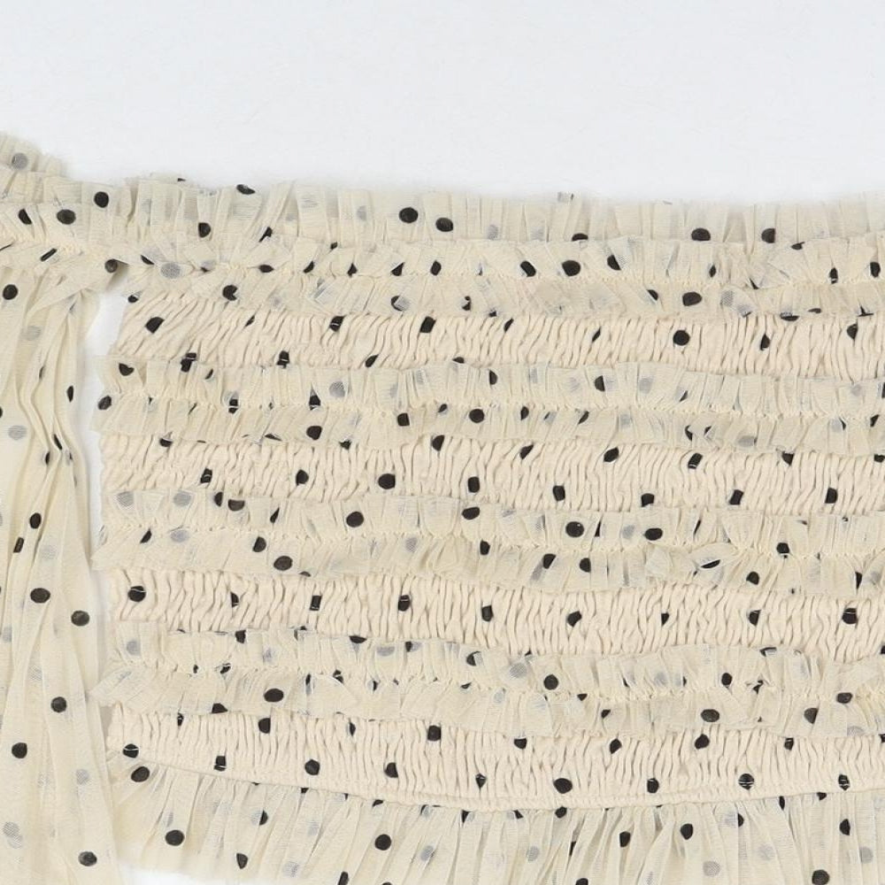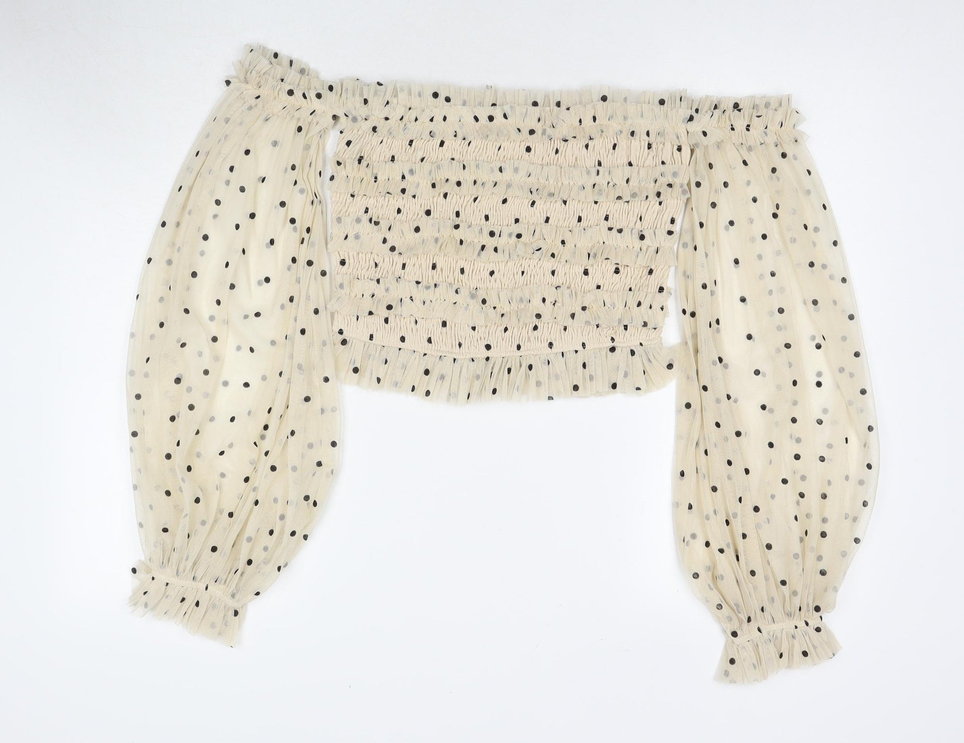 Womens Beige Polka Dot Polyester Basic Blouse Size L Off the Shoulder