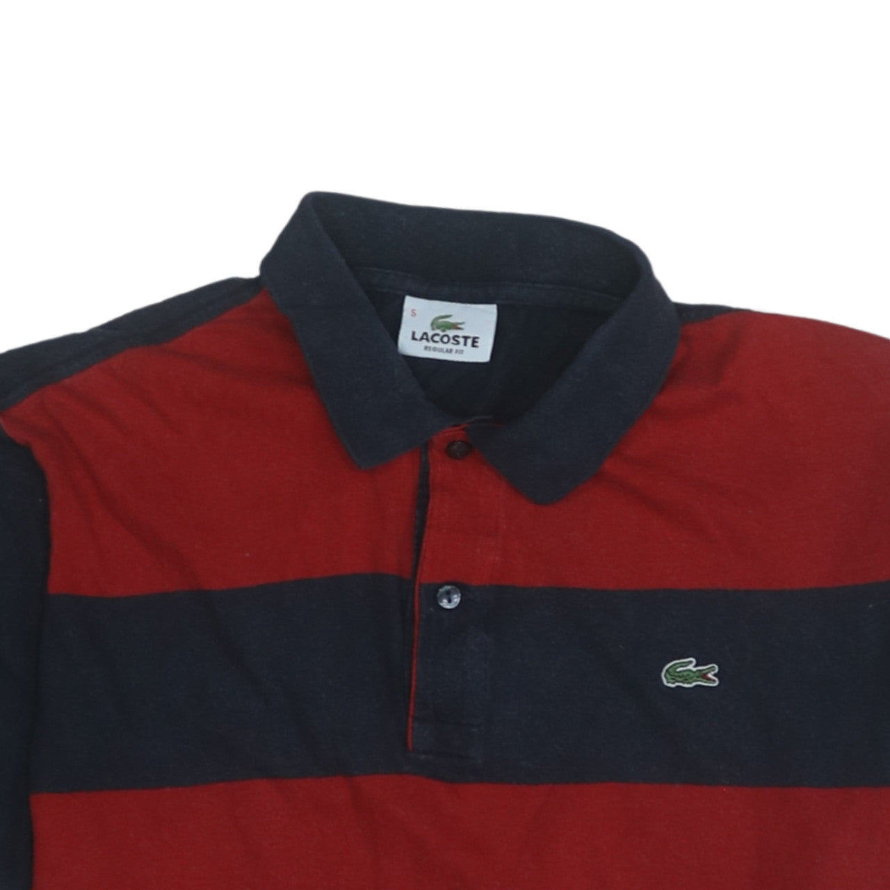 This Lacoste Men’s Red and Navy Striped Polo Shirt delivers timeless style and effortless comfort. Crafted from premium 100% cotton in a breathable jersey weave, the shirt features a soft handle and natural stretch, making it ideal for warm-weather wear. The striking horizontal stripes in rich red and navy contrast beautifully, giving it a sporty yet refined appearance. Designed in a classic polo silhouette with short sleeves and a neat point collar, it includes a two-button placket and the signature Lacoste crocodile logo embroidered on the chest, showcasing the brand’s heritage and quality. The Regular Fit cut ensures a comfortable yet flattering shape suitable for everyday casual wear or smart-casual occasions. The shirt measures approximately 100 cm at the chest and 75 cm in length, equating to a UK size L. Perfect for teaming with chinos, shorts, or jeans, this piece transitions seamlessly from weekend outings to laid-back gatherings. The breathable, lightweight cotton offers durability and softness even after multiple washes. Conditioned as ‘Very Good’, there is slight fade from gentle wear, but it remains in excellent overall shape with no visible damage. Suitable for spring through autumn, this polo provides a versatile wardrobe staple that blends heritage style with modern comfort. If you appreciate quality craftsmanship and understated design, this classic Lacoste polo is a must-have addition to your collection. Whether worn solo or layered under a jacket, it captures smart casual appeal with enduring French flair.