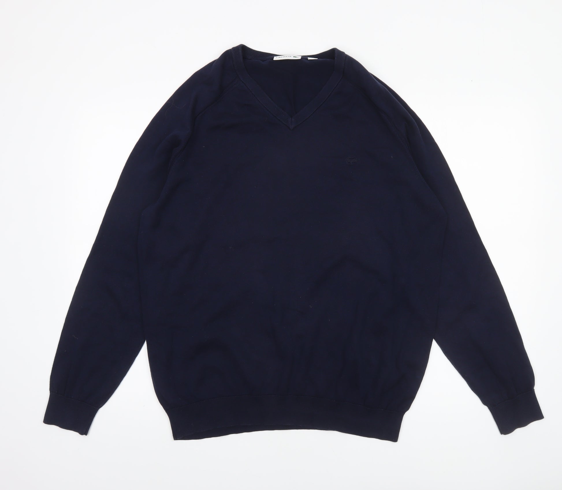 This Lacoste men’s jumper combines classic elegance with comfort, making it a versatile wardrobe staple for any season. Crafted from a premium blend of 90% cotton, 5% wool, and 5% silk, the fabric offers a soft yet durable feel that ensures lasting quality and breathability. The classic V-neck design adds sophistication, while the subtle embroidered Lacoste logo brings a touch of signature style without overpowering the minimalist aesthetic. Perfect for layering over a shirt for business casual occasions or wearing on its own for relaxed weekends, this navy blue pullover is ideal for autumn, winter, and spring. The lightweight knit allows for comfortable wear throughout the day, maintaining warmth without feeling bulky. With its ribbed cuffs and hem, the jumper retains its shape and provides a flattering fit for any body type. Designed in size XL, it ensures a relaxed yet well-structured silhouette that suits everyday wear. The tight-knit construction and high-quality materials make this piece both breathable and resilient, offering a refined look that pairs easily with chinos, jeans, or tailored trousers. Its machine-washable care instructions guarantee easy maintenance while preserving the fabric’s integrity over time. This garment is in excellent pre-owned condition, showing minimal signs of use with no visible damage or stains. A timeless addition to any wardrobe, this Lacoste V-neck jumper is equally at home in professional settings as it is in casual environments. Whether worn beneath a blazer for smart layering or styled with a polo shirt for a classic off-duty look, it provides effortless versatility and signature Lacoste refinement. Elevate your wardrobe with this expertly crafted piece that blends sophistication, comfort, and iconic style in one. An ideal choice for the modern man seeking both functionality and fashion-forward simplicity, this navy pullover jumper stands out as a must-have essential.
