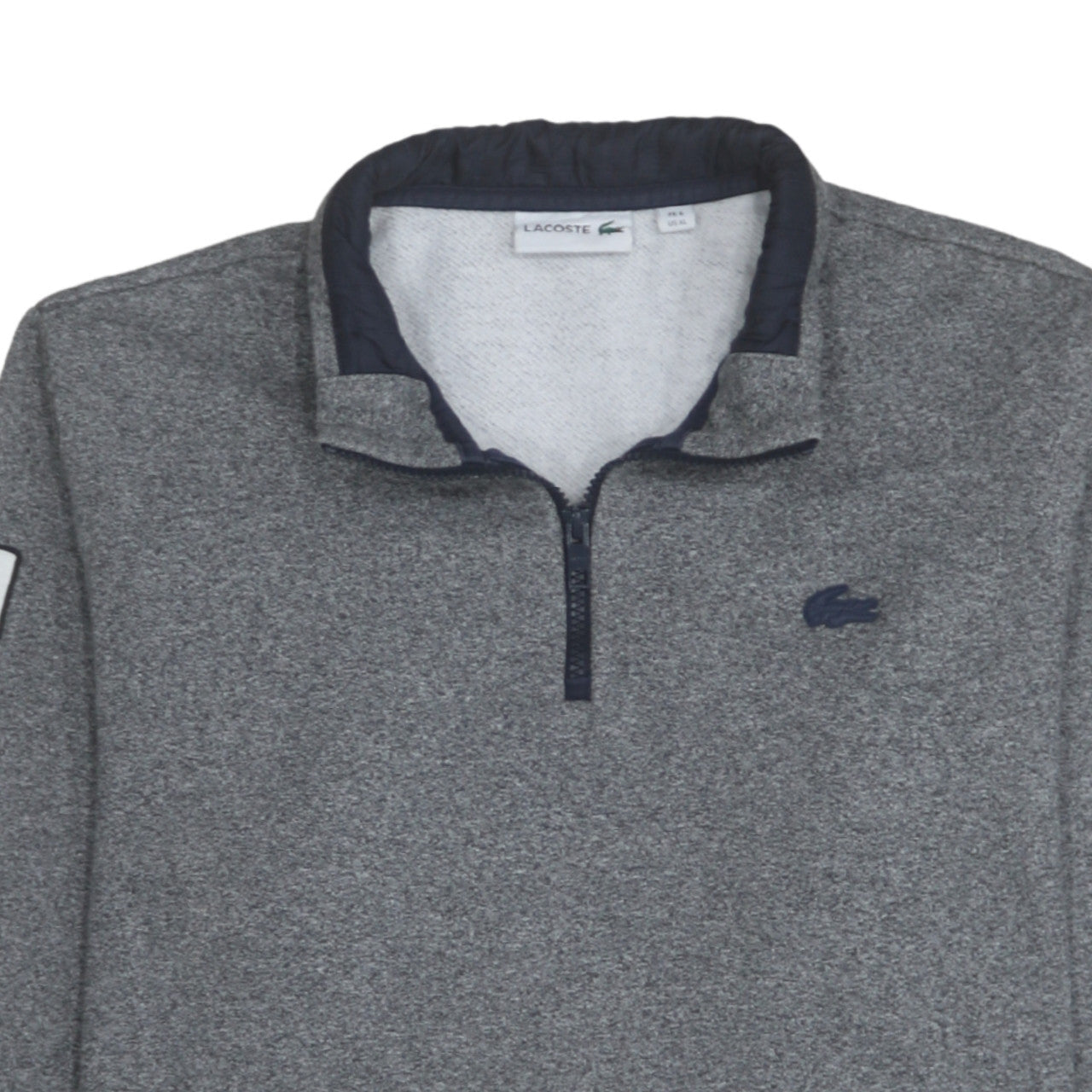 Stay effortlessly stylish and comfortable with this Lacoste Men's Grey Fleece 1/4 Zip Pullover Sweatshirt in size XL. Crafted with premium cotton and polyester fleece, this sweatshirt offers the perfect combination of warmth, softness, and durability. The classic high neck design with a functional quarter zip closure gives flexibility to adapt your look and manage comfort levels with ease. Its subtle embroidered Lacoste logo on the chest and the additional sleeve logo patch deliver the brand’s timeless quality and sporty sophistication. Ideal for layering during cooler months, this pullover sweatshirt is designed to keep you warm without compromising on style. The regular fit ensures comfort through everyday wear, while the long sleeves and ribbed trims provide a secure and flattering finish. The handy front kangaroo pocket adds practicality — perfect for keeping hands warm or storing small essentials while on the go. In a versatile grey colourway that complements any outfit, this piece can easily transition from casual weekend wear to a refined smart-casual look when paired with jeans or chinos. Whether worn for brisk morning walks, outdoor leisure, or relaxed evenings indoors, this Lacoste sweatshirt delivers understated luxury and enduring performance. Machine washable and designed for all seasons, it’s an ideal wardrobe staple for men who value both comfort and premium design. The soft fleece fabric creates a cosy feel suited for autumn and winter but remains breathable for spring days. In excellent pre-owned condition with minimal signs of wear, this item has been carefully inspected to ensure quality assurance. Great for the modern man seeking a blend of classic style and casual sophistication, this Lacoste 1/4 zip sweatshirt is a fine example of contemporary comfort clothing at its best. An ideal choice for those who appreciate refined sportswear style and lasting craftsmanship.