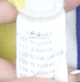 Men's Yellow Blue White Striped Slim Fit Polo Shirt Size L