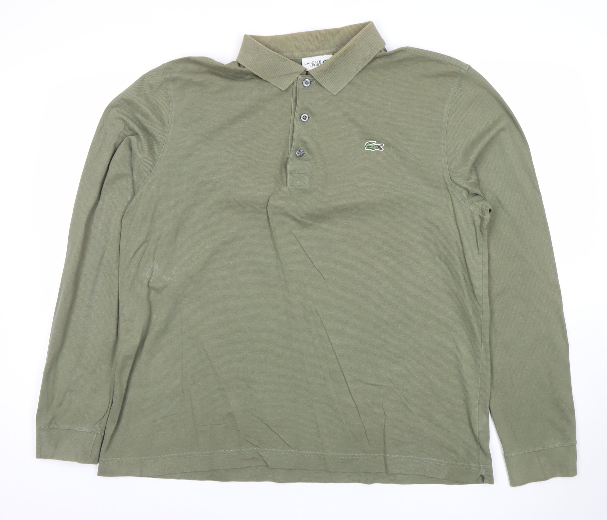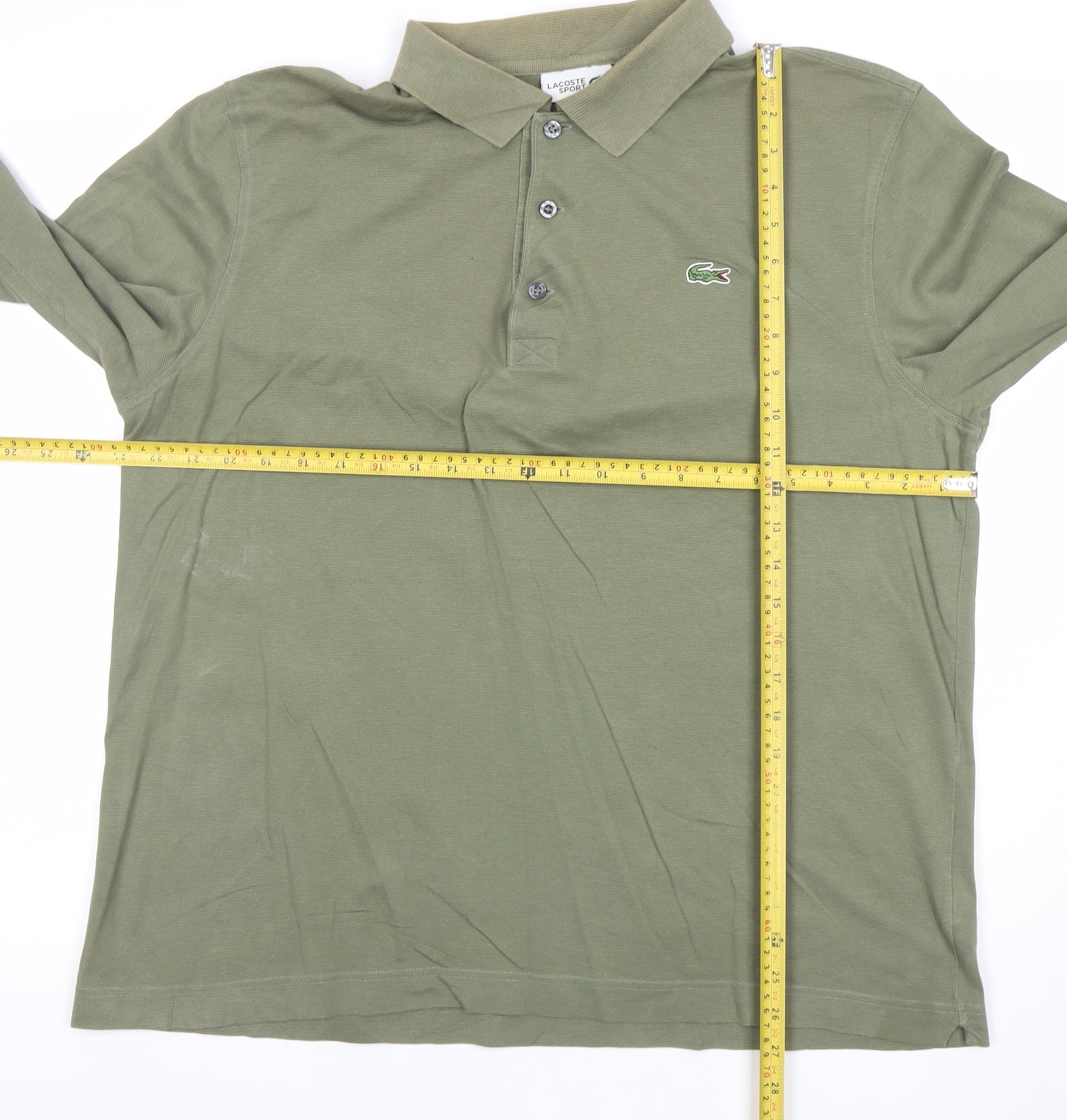 Elevate your casual wardrobe with this classic Lacoste Sport men's long sleeve polo shirt in a timeless green shade. Crafted from premium 100% cotton, this polo offers a soft, breathable feel for all-day comfort. Perfect for both leisure and sport, it blends Lacoste’s iconic heritage with effortless modern style. The collared neckline, three-button placket, and subtle Lacoste crocodile logo on the chest complete its signature look. Designed in a regular fit, this polo drapes comfortably on the body, providing ease of movement and a flattering silhouette. The lightweight jersey fabric makes it ideal for year-round wear, while the long sleeves add versatility for layering during cooler months. The subtle solid green colour pairs effortlessly with jeans, chinos, or shorts, offering a sophisticated yet relaxed look suitable for golf, tennis, or casual days out. Meticulously constructed, this polo features Lacoste’s renowned attention to detail, including durable stitching and high-quality cotton fabric that holds its shape through wear. With its classic design and refined finish, this polo represents understated elegance and everyday practicality. This particular piece is in very good pre-owned condition, showing minor signs of wear with a faint mark on the front but overall well-preserved quality. Ideal for men seeking timeless athletic style combined with premium comfort, this Lacoste Sport polo is a must-have addition to your casual wardrobe. Priced competitively for its excellent condition, it promises to be a versatile staple that transitions seamlessly from the course to the café. Add a touch of sporting sophistication with this authentic Lacoste piece and enjoy the perfect balance of comfort and class in every wear.