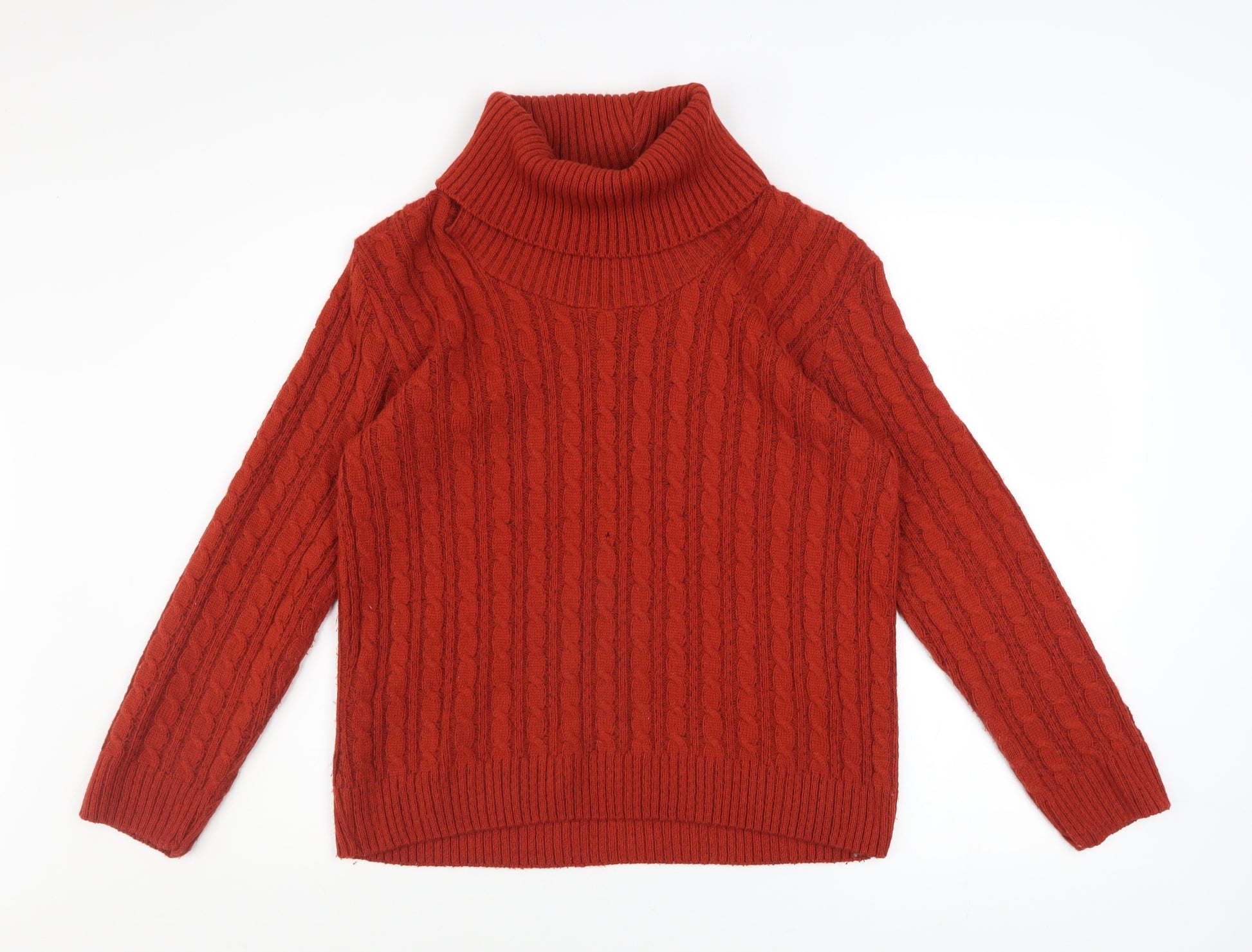 Womens Red Roll Neck Cable-Knit Wool Blend Jumper M