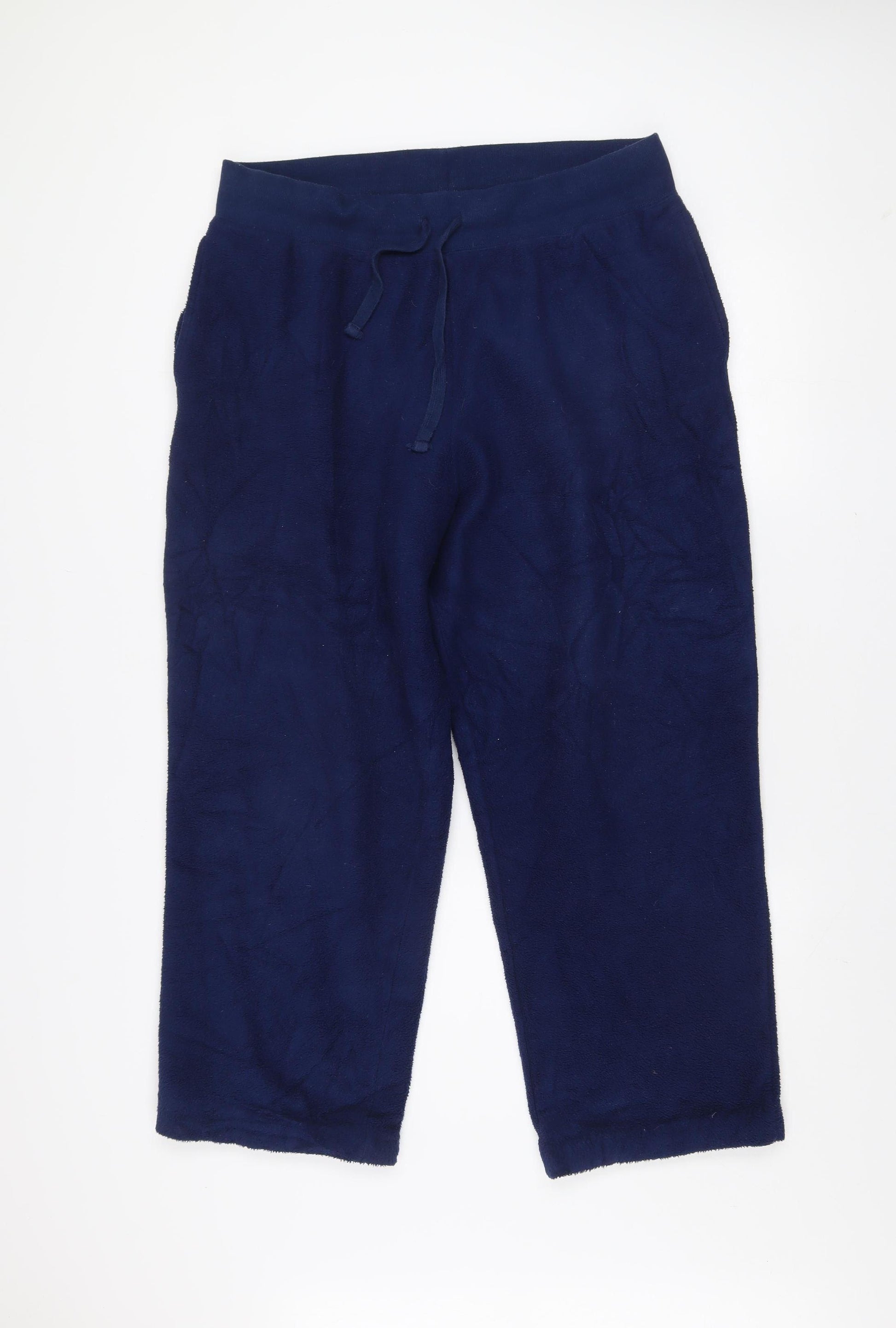 Lands’ End Men Navy Blue Fleece Jogger Trousers Size L Drawstring Waist