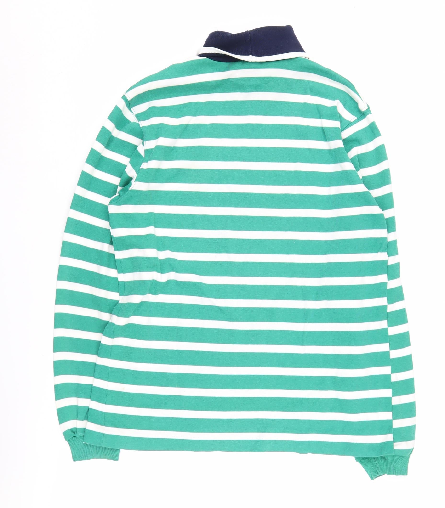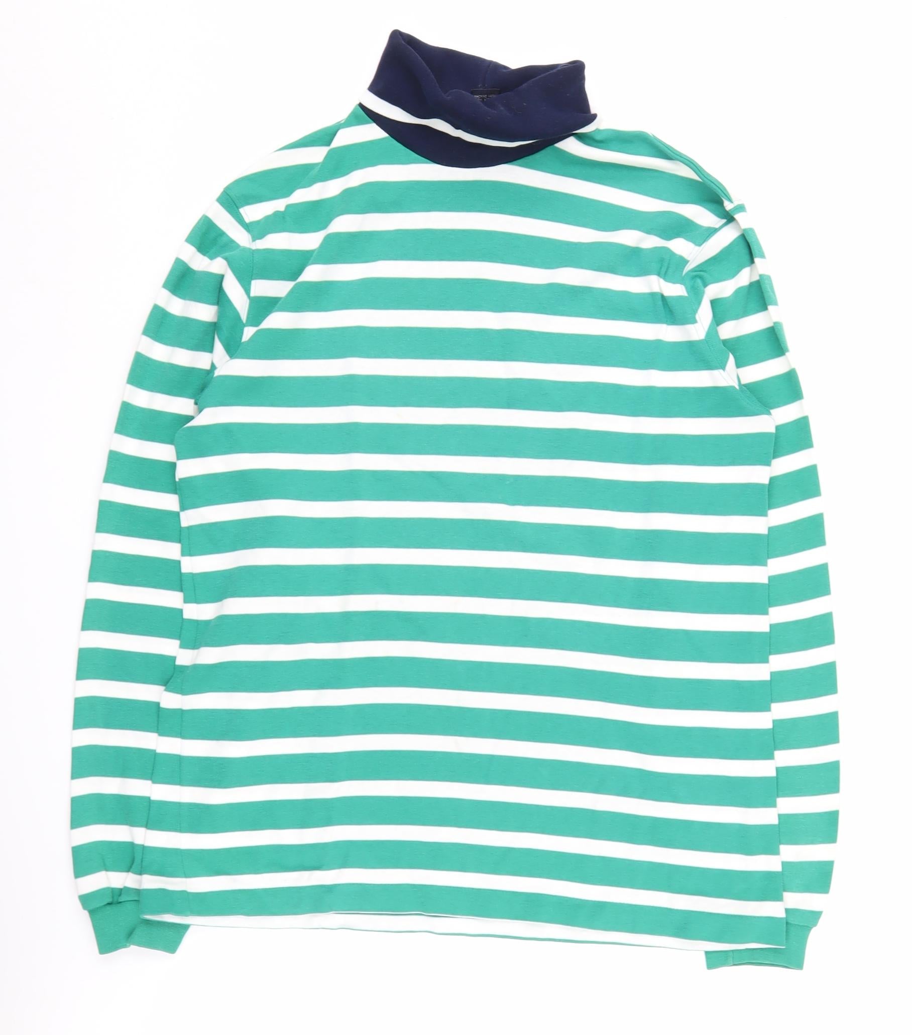 Step into classic style with this Lands' End Men's Green Striped Pullover Sweatshirt. Crafted for comfort and durability, this sweatshirt features a timeless green and white striped pattern, perfect for casual outings or relaxing at home. The breathable jersey fabric ensures a comfortable wear across different seasons, particularly suited for both autumn and spring. With a versatile turtleneck design, it offers a sophisticated touch while providing extra warmth. Made from 100% cotton, this sweatshirt promises a soft and breathable feel, ensuring comfort throughout the day.The medium size fits regular builds, while its long sleeves provide added coverage for those cooler days. Designed for the stylish and modern man, this pullover's relaxed fit ensures that it's not only functional but also stylishly easy to wear. Whether you're pairing it with jeans for a casual look or layering it under a jacket for added warmth, it blends effortlessly into any wardrobe.Despite being in very good condition, please note the slight stain on the front, which is barely noticeable and does not detract from the overall aesthetics and appeal of the piece. It's machine washable, making care and maintenance a breeze. At an attractive price of £15.25, this excellent Lands' End sweatshirt is perfect for those seeking an affordable yet sophisticated addition to their casual wardrobe. Don't miss out on bringing a piece of classic comfort and style into your collection.