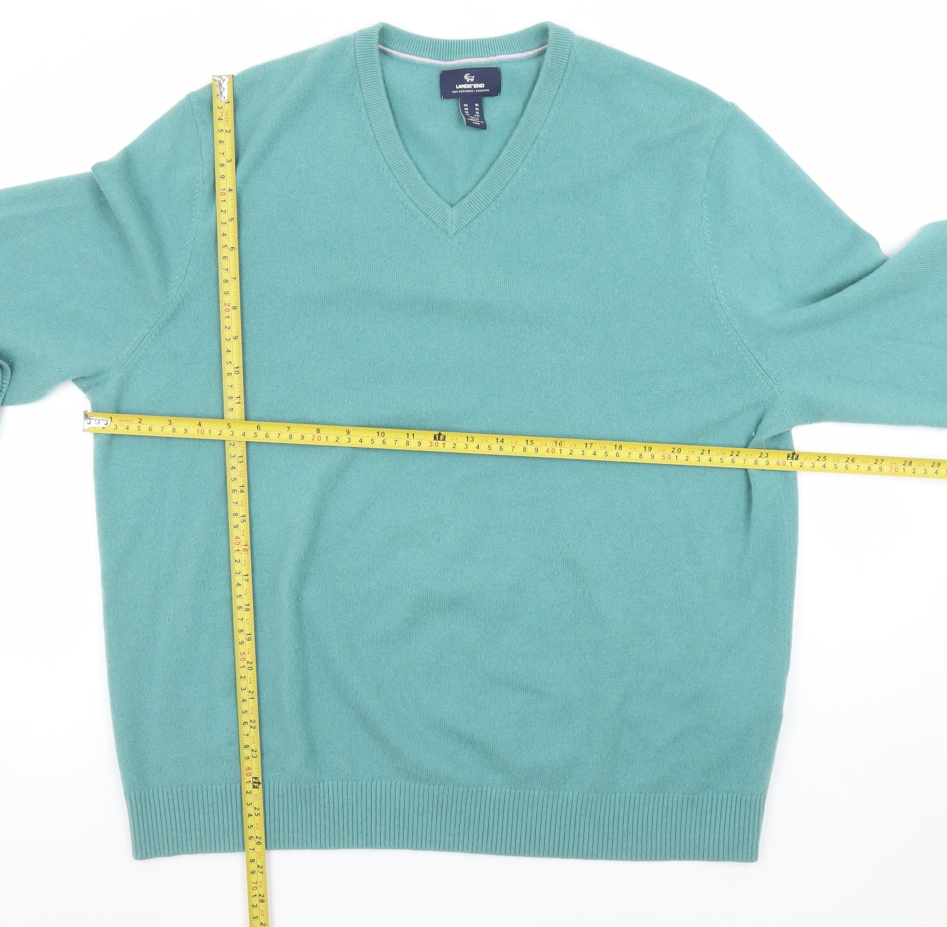Indulge in timeless luxury and warmth with this Lands' End men's cashmere V-neck jumper in an elegant green tone. Finely crafted from 100% pure cashmere, this lightweight knit offers a supremely soft feel and breathable comfort, ideal for layering throughout autumn, winter, and early spring. The classic V-neckline adds a refined touch, versatile enough for both business-casual wear and relaxed weekends alike. Designed for a regular fit, it flatters the shoulders and drapes naturally, providing both comfort and sophistication. The ribbed cuffs and hem ensure lasting shape retention, while the fine tight-knit texture showcases subtle craftsmanship that elevates everyday style. Perfect for pairing with smart trousers, chinos, or jeans, this luxurious Lands' End jumper can transition effortlessly from office attire to evening leisurewear. Its understated minimalist design and rich colour deliver lasting appeal, balancing heritage quality with contemporary versatility. As a trusted name in premium knitwear, Lands' End combines practicality with indulgent softness, making this pullover a must-have addition to any modern wardrobe. In excellent condition with minimal signs of previous use, this men's cashmere jumper retains its original charm and texture. Enjoy all-day comfort and timeless elegance in a piece built for enduring refinement and easy sophistication.