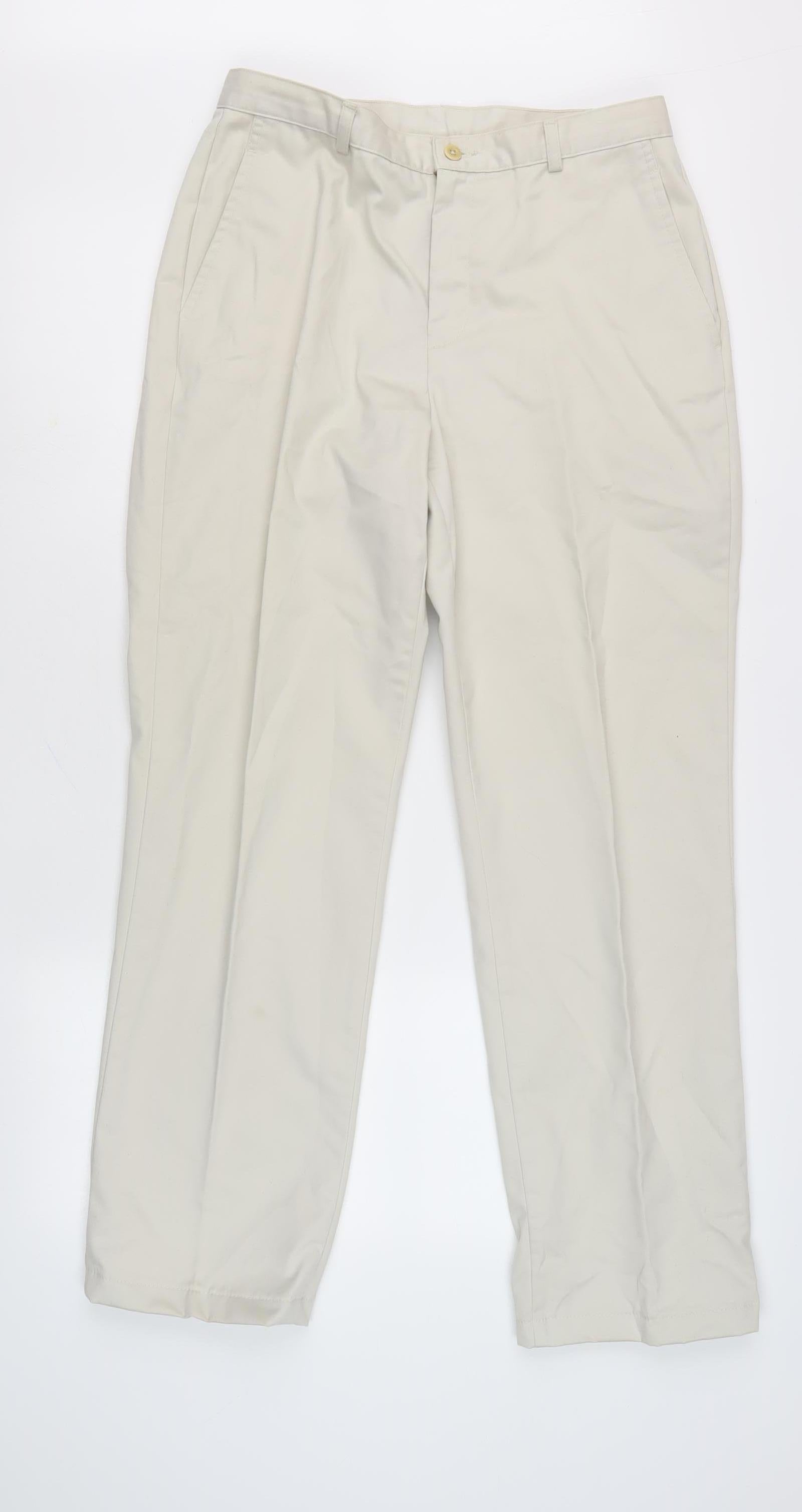 Upgrade your wardrobe with these versatile Lands' End Women's Beige Chino Trousers in Size 10. Perfectly crafted for the modern woman, these trousers blend style and comfort seamlessly. Made primarily from cotton with a hint of elastane, they offer the ideal balance of durability and stretch, keeping you comfortable throughout your day. The classic beige colour allows for easy pairing with a variety of tops, making them an essential piece in your casual wear collection. Featuring a straight leg style and flat front design, these chinos provide a timeless look that can transition effortlessly from a day at the office to a weekend outing. Designed with practicality in mind, they include convenient pockets, giving you space to carry essentials. With a mid-rise fit, they offer a flattering silhouette that complements various body types. These trousers suit any casual occasion and are perfect for the warm days of spring and summer. The button and zip closure ensures ease of wear, while the machine washable fabric promises easy care. Well-maintained in very good condition, they show light signs of wear but remain trendy and ready for new adventures. Priced affordably, these chinos provide a fantastic opportunity to enhance your everyday style without compromising on quality. Don't miss out on adding a touch of elegance to your wardrobe with this classic piece from Lands' End.