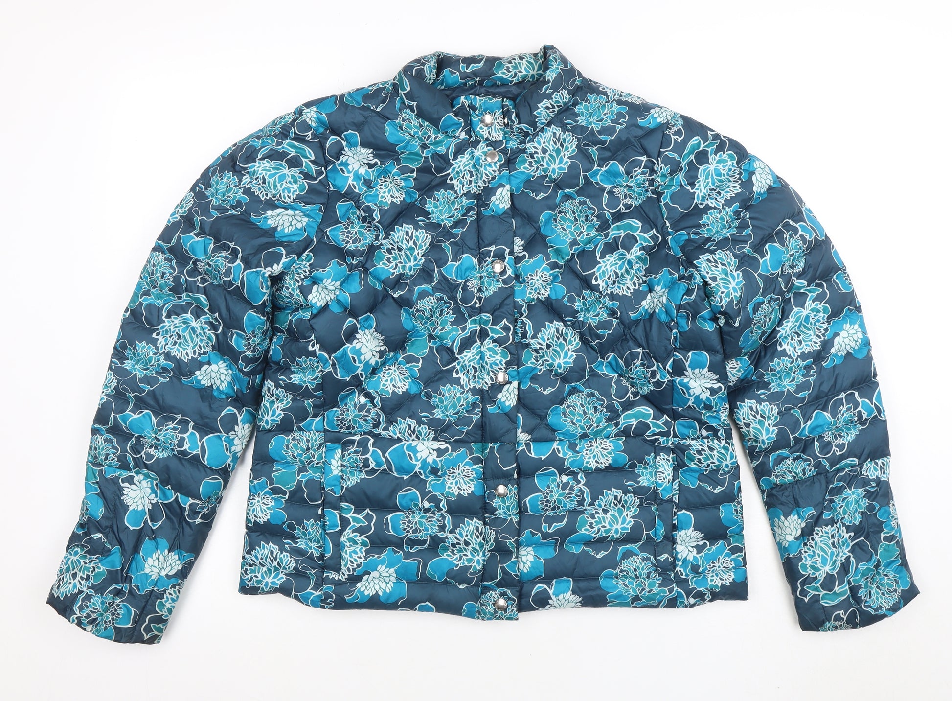 Women's Blue Floral Quilted Puffer Jacket L Petite