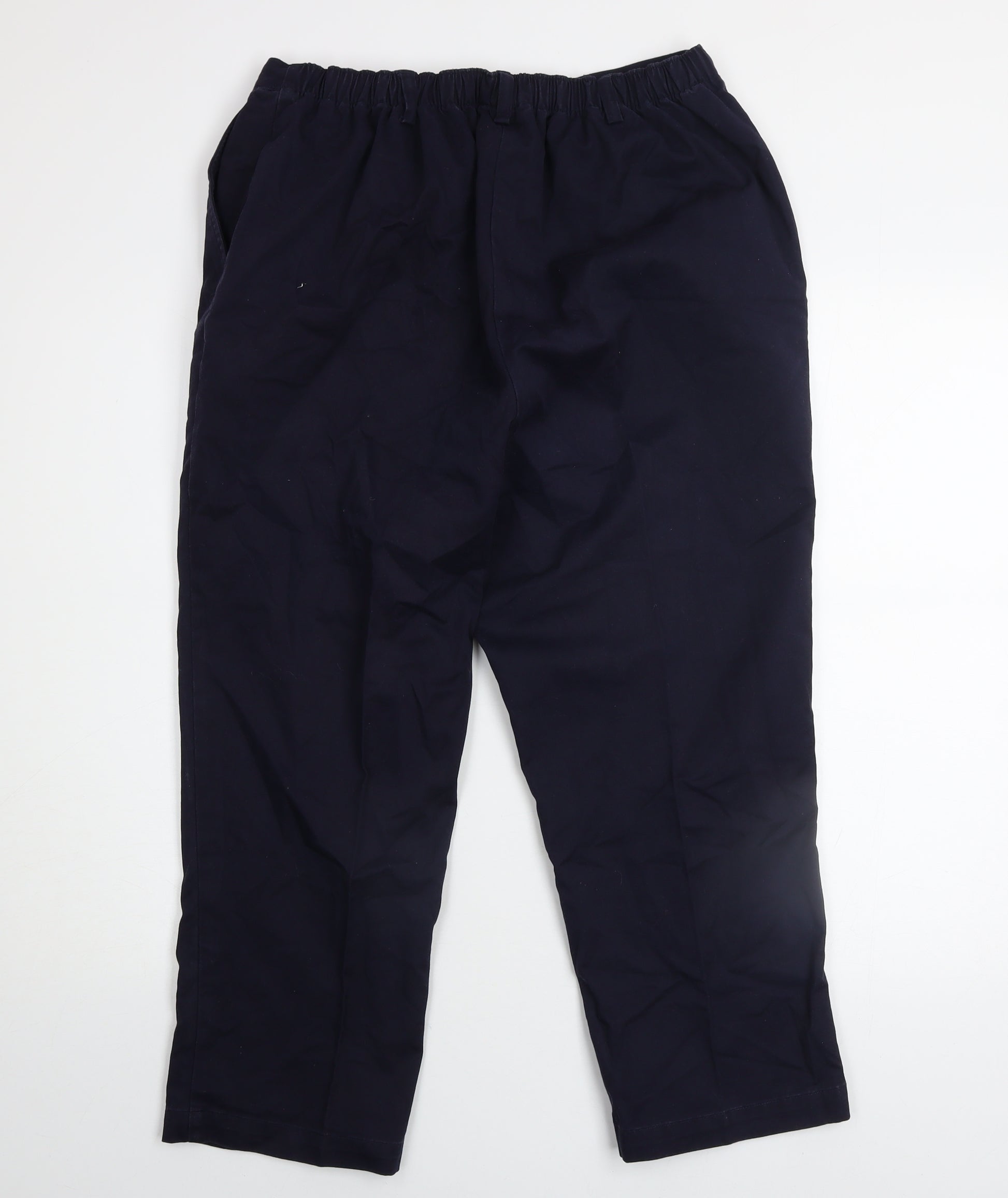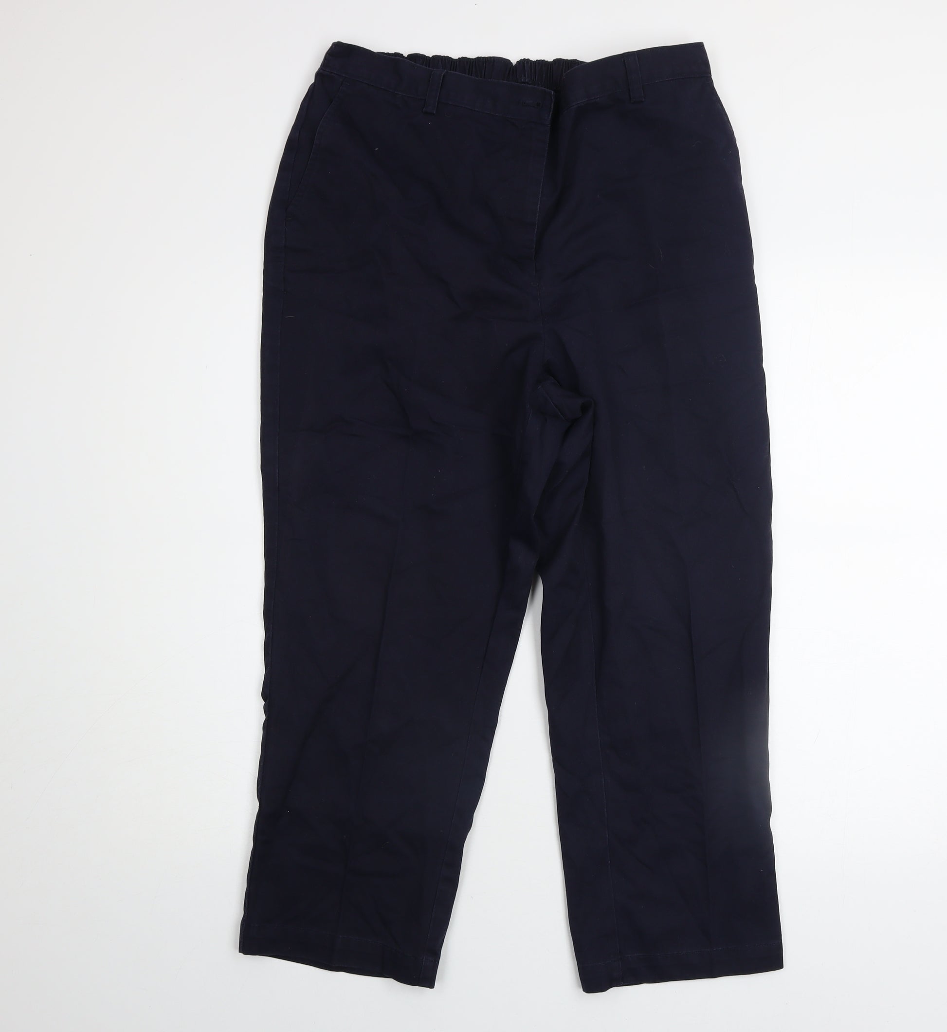 Women's Blue High Rise Straight Leg Cotton Blend Trousers UK 16