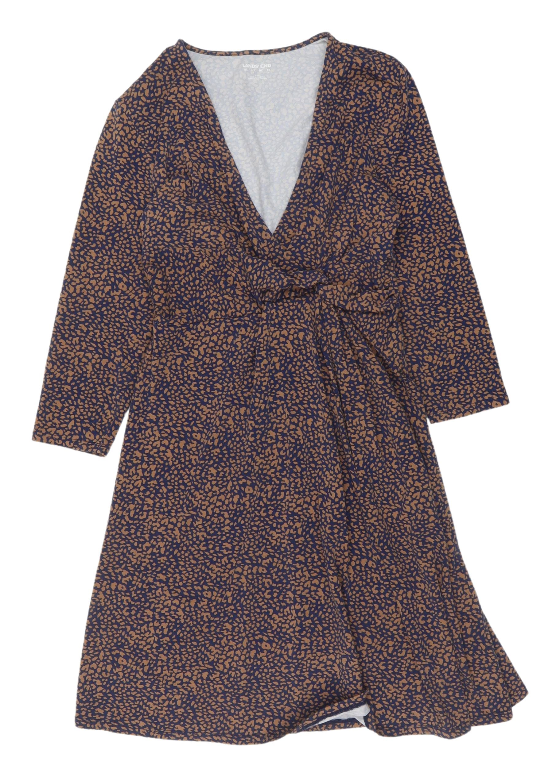 Step effortlessly into style with this Lands' End Women's Multicoloured Wrap Dress, featuring a delightful animal print. Designed to offer a chic silhouette, this dress melds a relaxed aesthetic with the sophistication of a wrap style. Perfect for casual outings or low-key gatherings, this versatile piece will be a staple in your wardrobe.Crafted with a soft and comfortable blend of 56% Cotton, 38% Modal, and 4% Elastane, the fabric guarantees a stretchy, cozy fit ideal for long hours of wear. The jersey material ensures a smooth texture and flowing movement, while the wrap design complements various body shapes, adding an element of elegance to your look.This dress, in a playful palette of colours, enhances its attraction through an effortlessly classic V-neckline, making it ideal for accessorising with your favourite necklaces. With long sleeves, it provides just the right amount of coverage, keeping you stylishly warm during cooler seasons or air-conditioned environments.Its animal print pattern contributes a touch of wild flair, appealing to fashion-forward individuals who appreciate a little vibrancy in their attire. Paired with a comfortable regular fit, this dress is tailored to fit perfectly, ensuring that you maintain an air of casual sophistication whether you're at a brunch, a casual day at work, or a simple day out.For a piece in excellent condition with minor wear, this dress is a fantastic addition to any wardrobe, offering timeless appeal and endless styling possibilities. At an attractive price, indulge in a dress that promises style, comfort, and enduring quality, showcasing Lands' End's commitment to insightful fashion choices.
