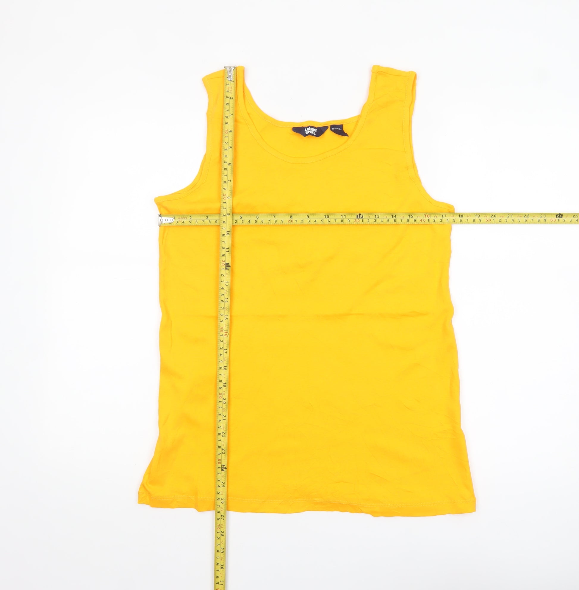 Brighten up your casual wardrobe with this vibrant yellow tank top from Lands' End. Designed for women, this sleeveless top offers a simple yet versatile look that works perfectly for warm-weather days, layering, or relaxed indoor wear. Crafted from soft 100% cotton, it ensures all-day breathability and comfort, ideal for spring and summer seasons. The regular fit and smooth jersey fabric allow a flattering shape and ease of movement, making this piece both practical and stylish. The scoop neckline creates a classic, feminine touch while the wide straps ensure comfort and perfect coverage. This tank pairs beautifully with jeans, shorts, or skirts, letting you create effortless casual looks. Finished with neat stitching and a clean solid colour design, it embodies the quality and timeless minimalism that Lands' End is known for. Whether worn solo on a sunny day or layered under a cardigan or denim jacket, this top brings both colour and comfort to your collection. The piece shows minimal signs of previous wear, maintaining an excellent overall condition. Perfect for holidays, relaxed weekends, or layering under workwear for added comfort, this versatile wardrobe essential will soon become a favourite. Simple care instructions make it easy to maintain—just machine wash and go. Offering premium quality at an affordable price, this Lands' End yellow cotton tank delivers reliable everyday style for women who appreciate comfort and lasting wear.