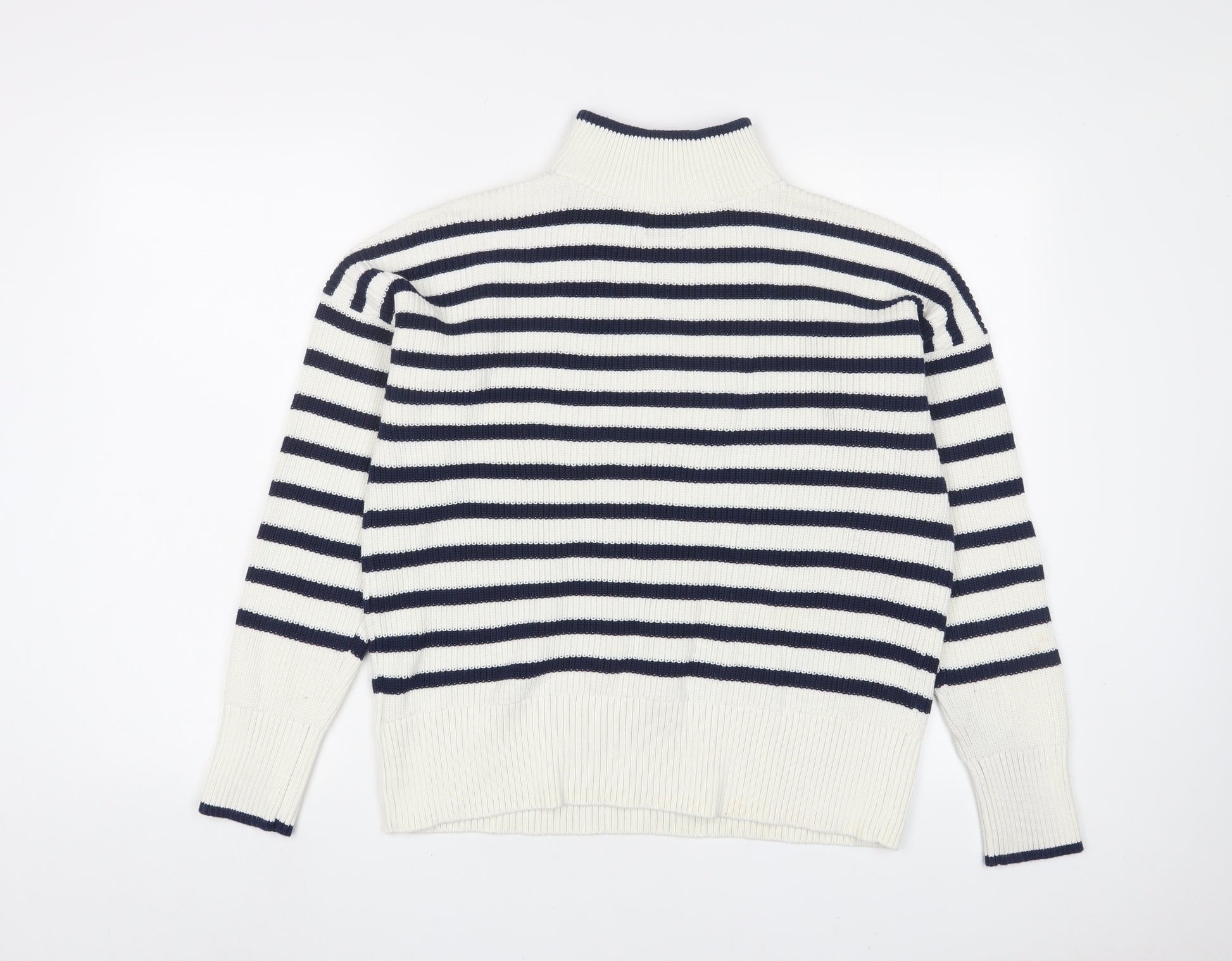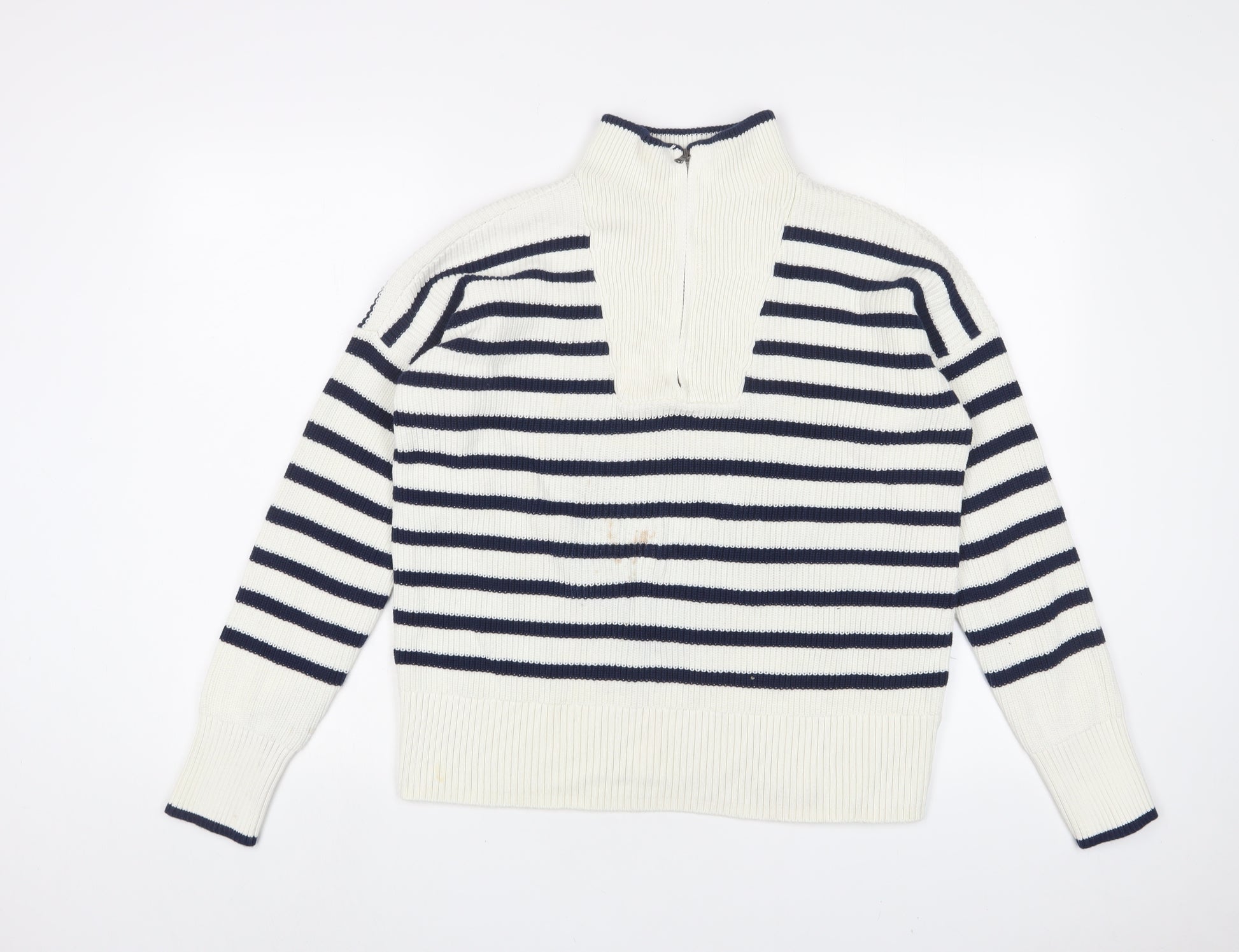 Womens White Striped Cotton Pullover Sweatshirt Size S Zip