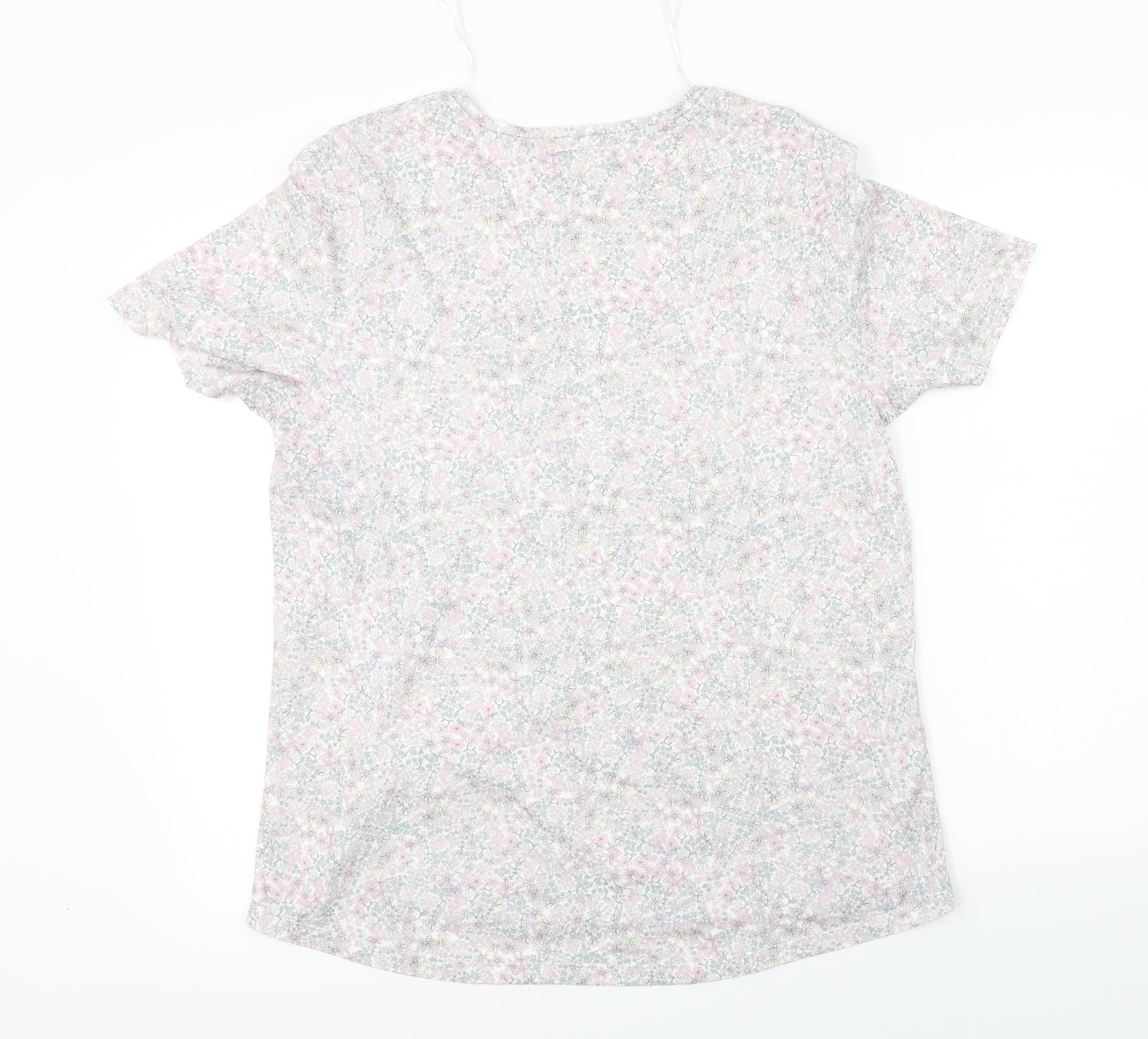 Marks and Spencer Womens White Floral T-Shirt Size 16 Short Sleeve Cotton