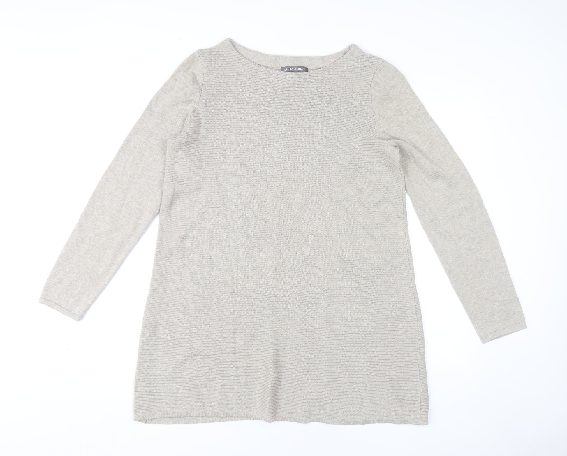 Introducing a classic piece from Laura Ashley, this beige dress is perfect for any woman's wardrobe. Made from a breathable blend of cotton, polyester, and nylon, this dress offers both comfort and durability. The understated beige colour provides versatility, making it suitable for various occasions. Featuring long sleeves and a boat neckline, it combines elegance with simplicity. The dress maintains a pristine condition with no visible wear or damage, ensuring excellent quality for pre-loved standards. Pair it with your favourite accessories for an effortlessly chic look, whether you're heading to the office or a casual outing. The lack of bold patterns makes it a versatile canvas for styling, allowing you to express your unique fashion sense. With a regular fit, it flatters a range of body types, ensuring both comfort and style. Don't miss out on this opportunity to own a timeless piece from a renowned brand at an economical price. Transform your wardrobe with this elegant Laura Ashley dress today.