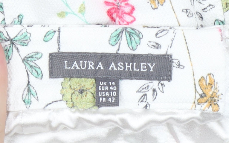 Discover the charming elegance of this Laura Ashley multicoloured floral skirt, perfect for adding a delicate touch to your wardrobe. Designed for comfort and style, this skirt features a lovely floral pattern on a soft, multicoloured palette. Crafted from a blend of cotton, viscose, and elastane, the fabric provides a gentle stretch for ease of movement while maintaining its flattering, structured shape. Ideal for casual occasions, this women's skirt sits comfortably with a regular fit, making it a versatile piece for many ensembles. Pair it with a plain top for a chic daytime look or dress it up with a blouse and heels for a sophisticated evening out. The skirt's excellent condition signifies its well-kept nature, ensuring it's a fabulous choice for those who appreciate quality and style. Embrace a touch of floral beauty with this delightful Laura Ashley skirt.