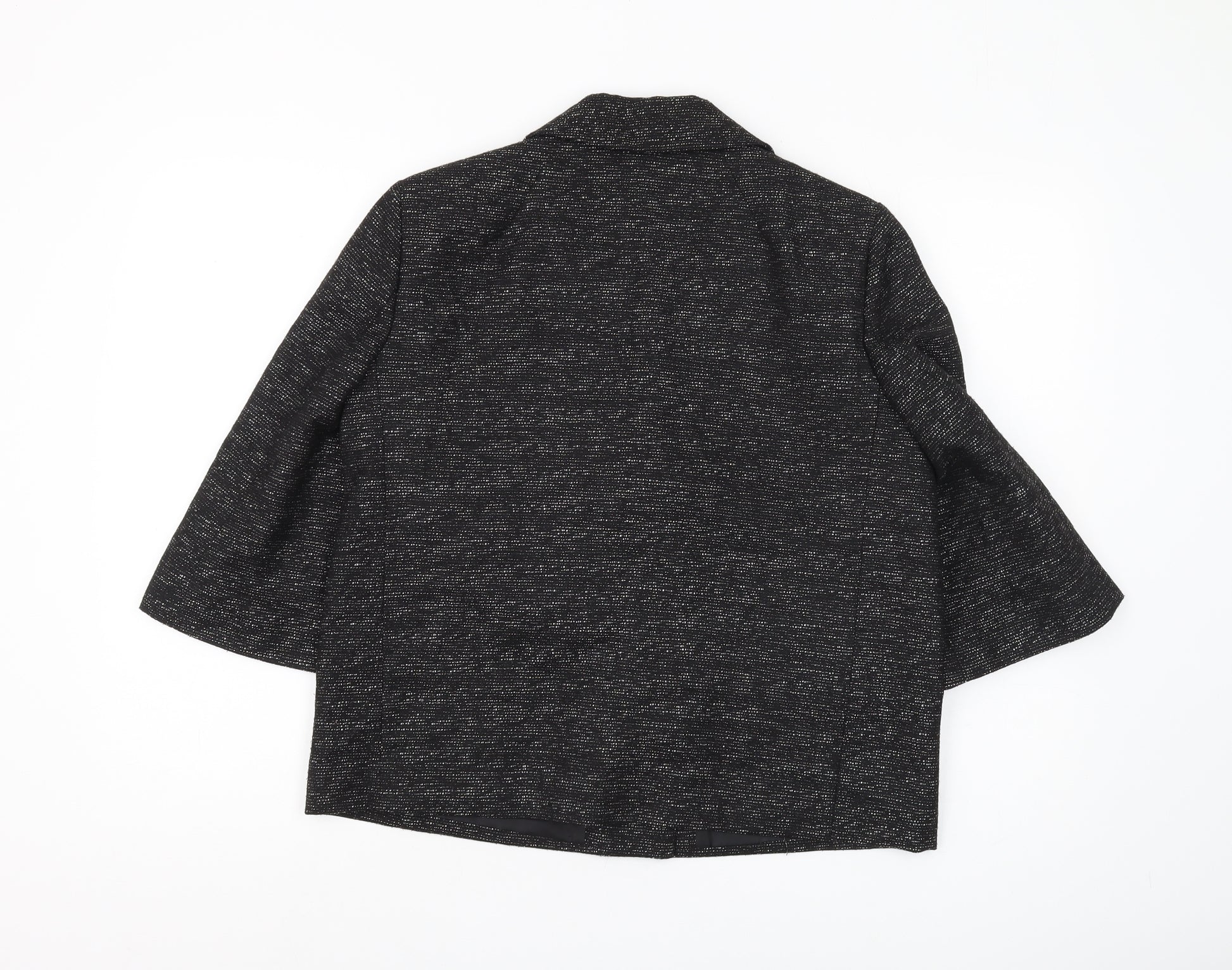 Enhance your wardrobe with this elegant Laura Ashley Women's Blazer. Designed in a versatile black tweed, this short jacket with 3/4 sleeves provides a sophisticated update to your business or workwear attire. The blazer features a single-breasted button closure with classic accents that make it ideal for autumn and winter seasons. The regular fit ensures comfort and style, making it an excellent choice for any workplace. Crafted from a meticulous blend of 51% polyester, 26% viscose, and 23% acrylic, this piece boasts durability and elegance. The fully lined polyester interior provides an added layer of warmth and comfort. Whether you're attending a business meeting or stepping out for a formal occasion, this blazer promises to be a reliable and chic addition to your ensemble. Gently worn and in excellent condition, it's perfect for the fashion-conscious individual looking to add a touch of class to their coat and jacket collection.