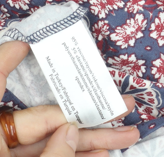 Marks and Spencer Womens Multicoloured Floral Viscose Fit & Flare Size 10 V-Neck Pullover