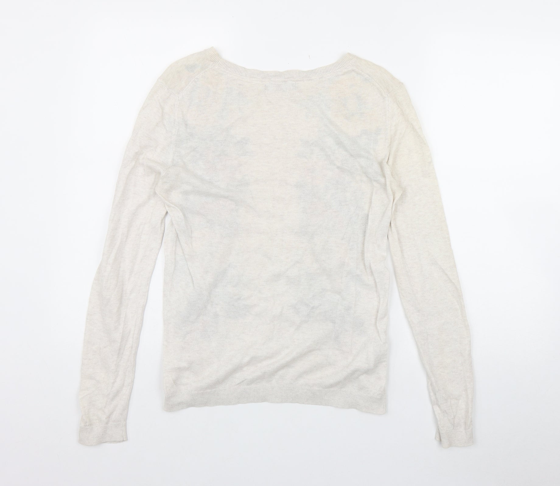 Womens Beige Round Neck Cotton Pullover Jumper Size 12