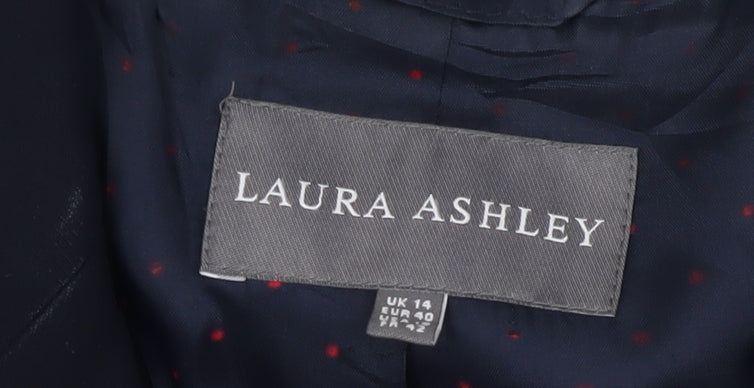 Sophisticated and versatile, this Laura Ashley women's blazer in classic black is an excellent choice for business and workwear occasions. Crafted from a comfortable blend of 66% polyester and 34% acetate, this blazer features a tailored single-breasted cut with a notch lapel style, making it an ideal addition to your professional wardrobe. The lined interior offers extra comfort, making it suitable for both autumn and spring seasons. With a regular fit and long sleeves, the blazer is both stylish and practical. The one-button front adds a touch of elegance, accentuating a smooth silhouette that enhances your ensemble, whether paired with trousers or a skirt. As an excellent condition item with no visible flaws, it represents an exceptional choice for anyone seeking reliable, everyday office attire. Available in size UK 14, it offers a regular size type fit ensuring a comfortable wear for women. This blazer does not have any specific patterns or themes, making it easy to pair with other items in your wardrobe.