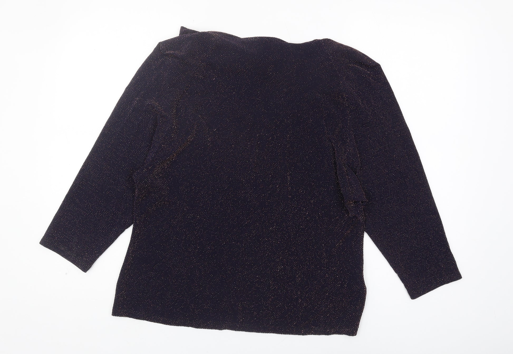 Discover elegance with this Laura Ashley Women's Black Cowl Neck Top in size UK 16. This stunning piece is perfect for adding a touch of sophistication to any wardrobe. Crafted from a blend of polyamide and elastane, the top offers both comfort and style. The 3/4 sleeve design provides an elegant look, making it suitable for various occasions. Its shimmering black colour adds a hint of glamour, reflective in the metallic detail throughout the fabric. The cowl neckline enhances its chic appeal, perfect for both day and night wear. Despite being pre-loved, it is in excellent condition, showing minimal signs of wear. Ideal for women seeking a versatile and stylish addition to their collection, this top promises to captivate and enchant. Enjoy pairing it with both skirts and trousers for a timeless look. A must-have for those who appreciate the blend of classic design with modern elegance. Don't miss the opportunity to own this beautiful Laura Ashley piece.