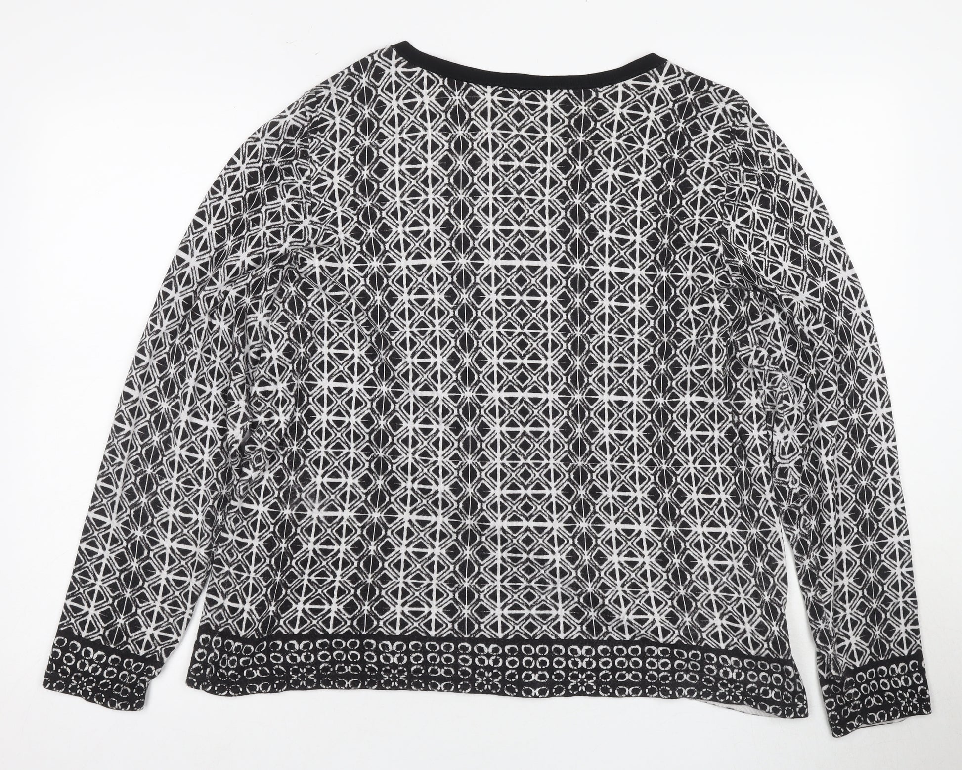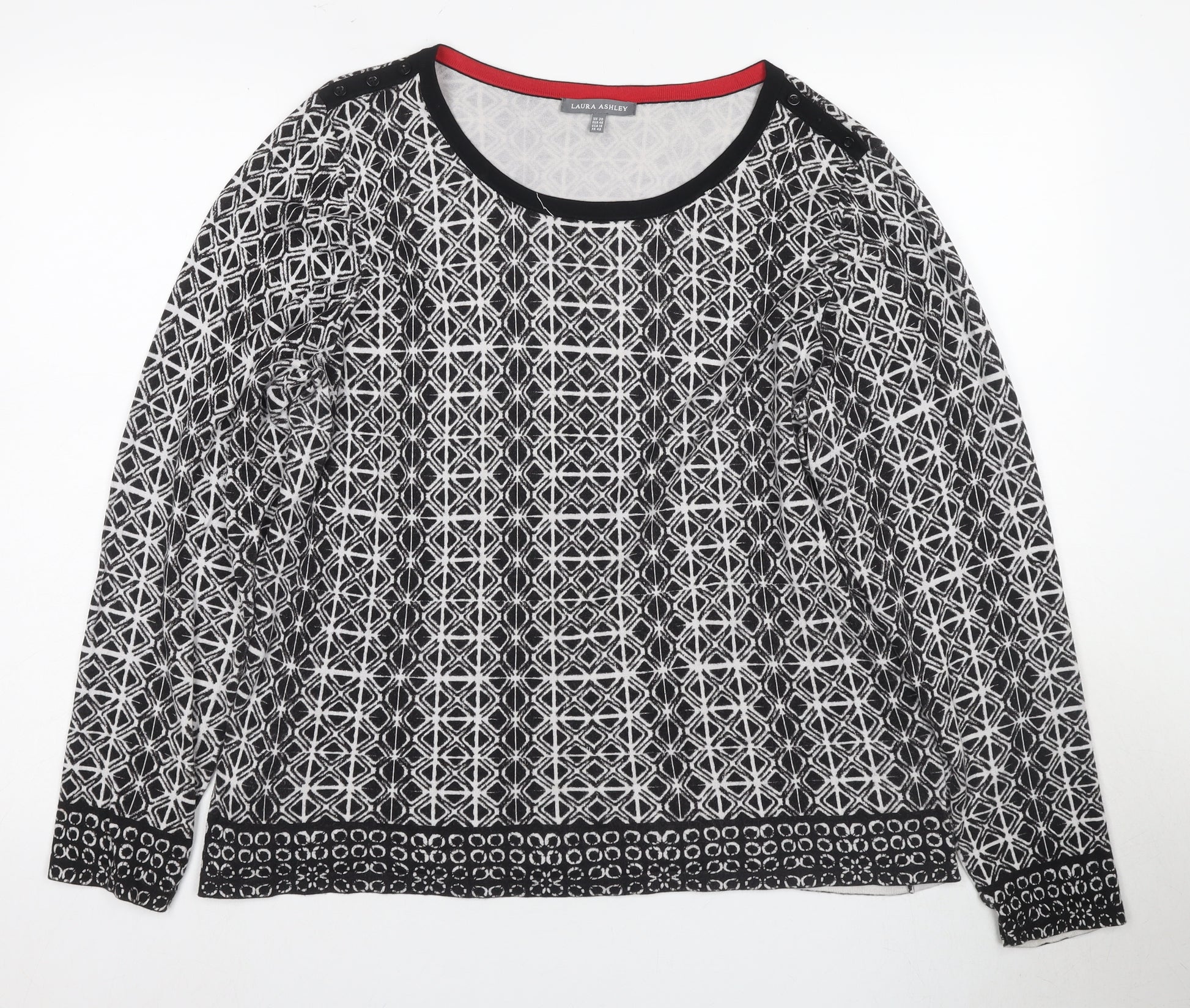 Elevate your wardrobe with this elegant Laura Ashley women's blouse in a classic black geometric pattern. Crafted for both comfort and style, this blouse is perfect for casual occasions while still offering a sophisticated edge. Made from a quality blend of viscose, nylon, and elastane, it offers a comfortable fit with subtle stretch. The long sleeves provide an ideal choice for cooler days, while the pullover closure ensures ease of wear. Featuring a regular size fit, this blouse can be easily paired with jeans or skirts to create a variety of looks. With its machine washable fabric, maintaining its pristine condition is a breeze. Offering a high-quality finish with no visible signs of wear, this item is in excellent condition and ready to enhance your collection. Don't miss out on this beautiful piece from Laura Ashley, a renowned brand known for its timeless designs. Perfect for adding a touch of elegance to any ensemble, it's sure to become a favourite in your daily rotation.