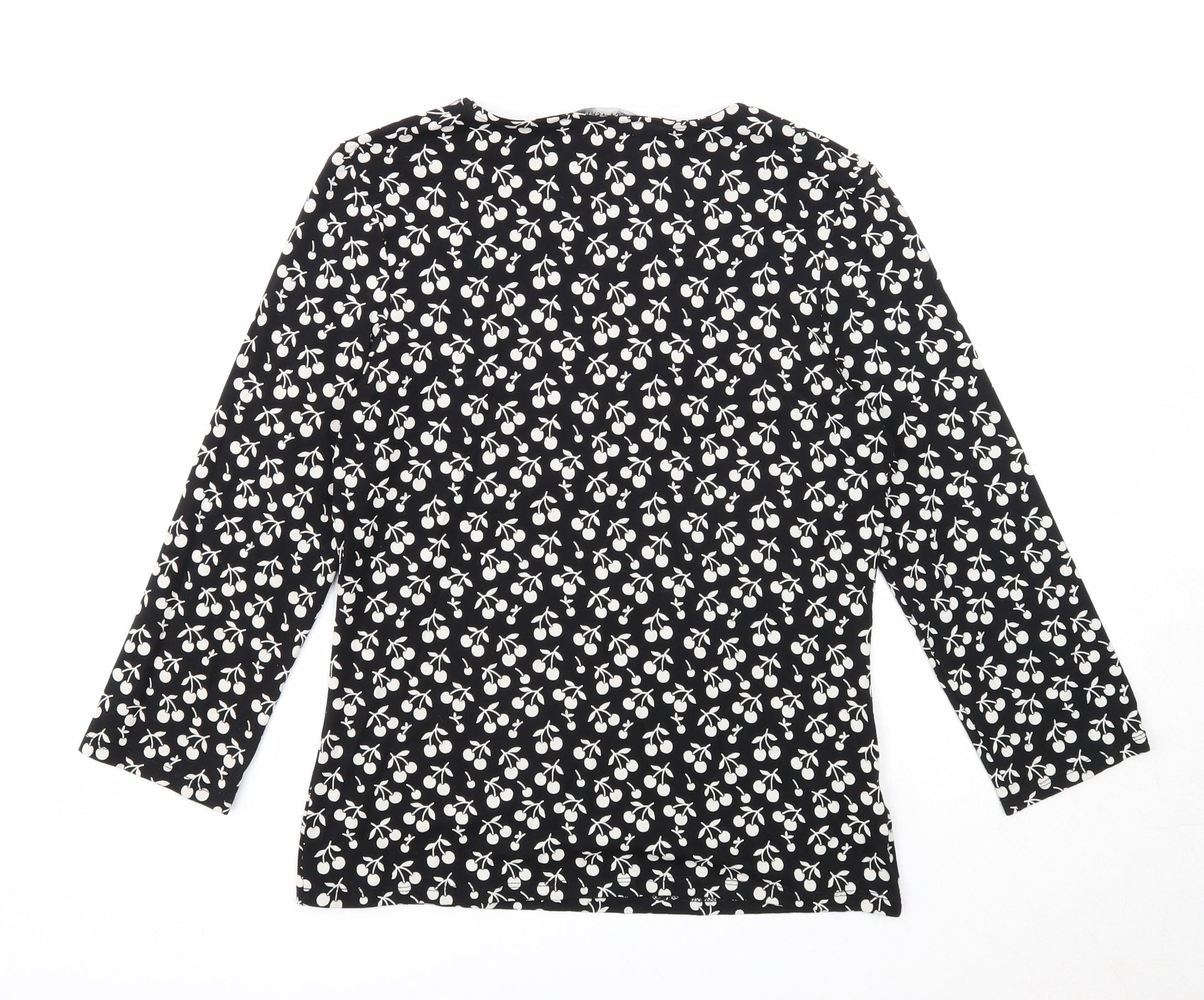 Womens Black Geometric Viscose Basic Blouse Size 12 V-Neck - Cherries