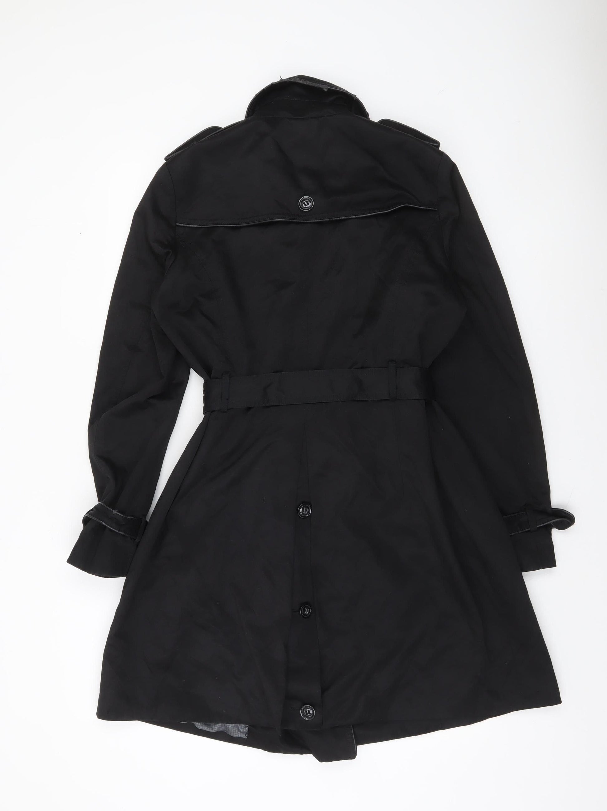Women's Black Trench Coat Size 12 Belted Mid-Length Classic Style