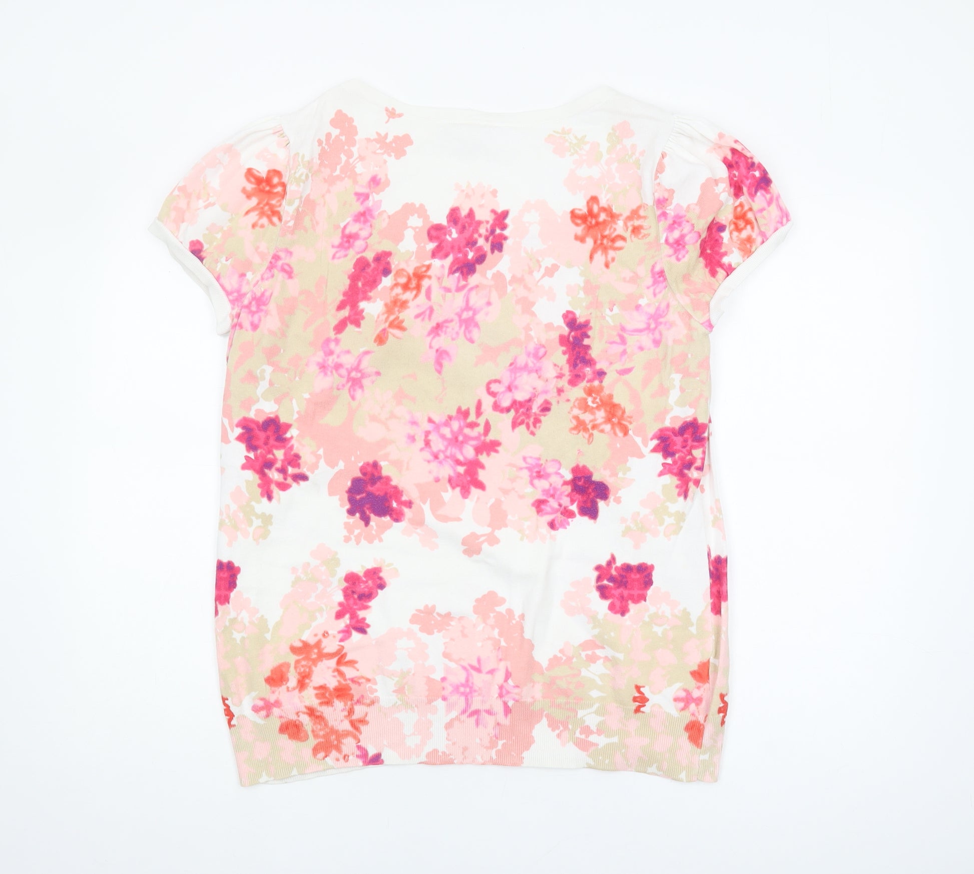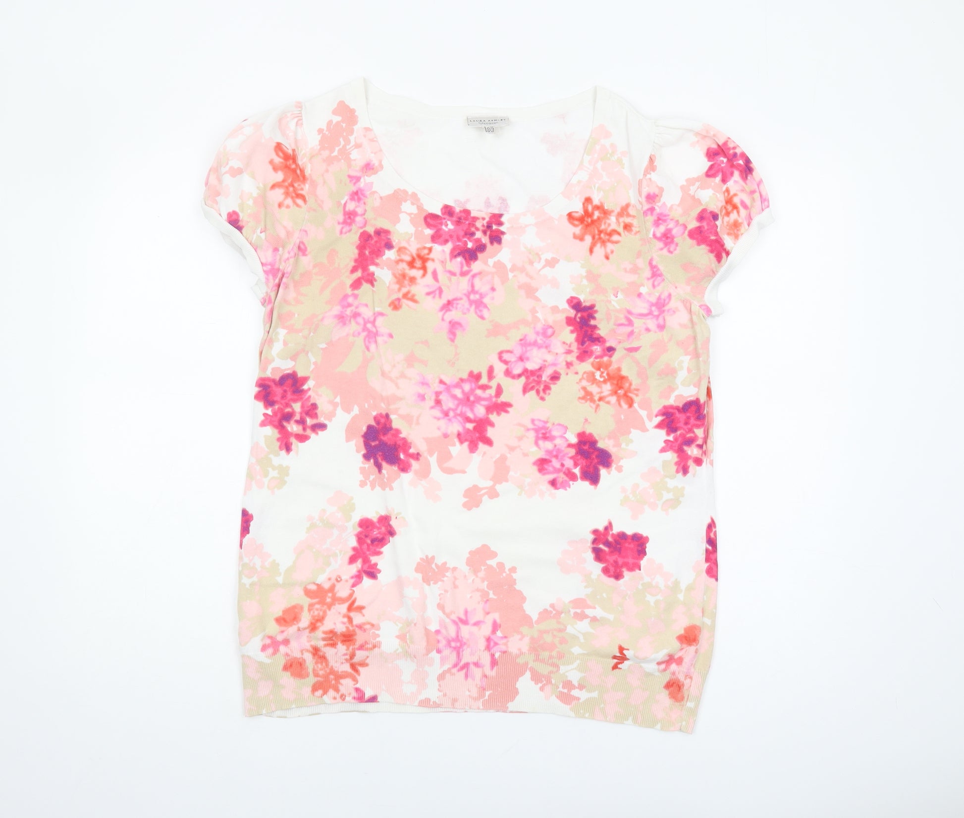 Embrace timeless elegance with this Laura Ashley floral blouse, crafted for the discerning woman who appreciates quality and style. Designed with a vibrant multicoloured floral pattern, this blouse is perfect for adding a splash of colour to any outfit. Its short, cap sleeves offer a touch of femininity while ensuring comfort throughout the day, making it an ideal choice for casual outings or weekend getaways.Crafted from 100% cotton, this blouse boasts breathability and softness against the skin, promising lasting comfort. Its round neckline enhances the classic silhouette, allowing effortless pairing with jeans, skirts, or trousers. Whether you're brunching with friends or enjoying a casual day out, this blouse ensures you remain stylish with minimal effort.The blouse is designed for regular fit, providing a flattering drape without compromising on comfort. Easy to care for, it's machine washable, making it convenient for everyday wear. While it shows light signs of previous wear, it remains in excellent condition, testament to its quality craftsmanship.Perfectly suited for the warm months yet versatile enough to layer under a jacket or cardigan during cooler seasons, this piece is a staple addition to any wardrobe. Make it yours today and enjoy the effortless blend of style, comfort, and quality that Laura Ashley is renowned for.