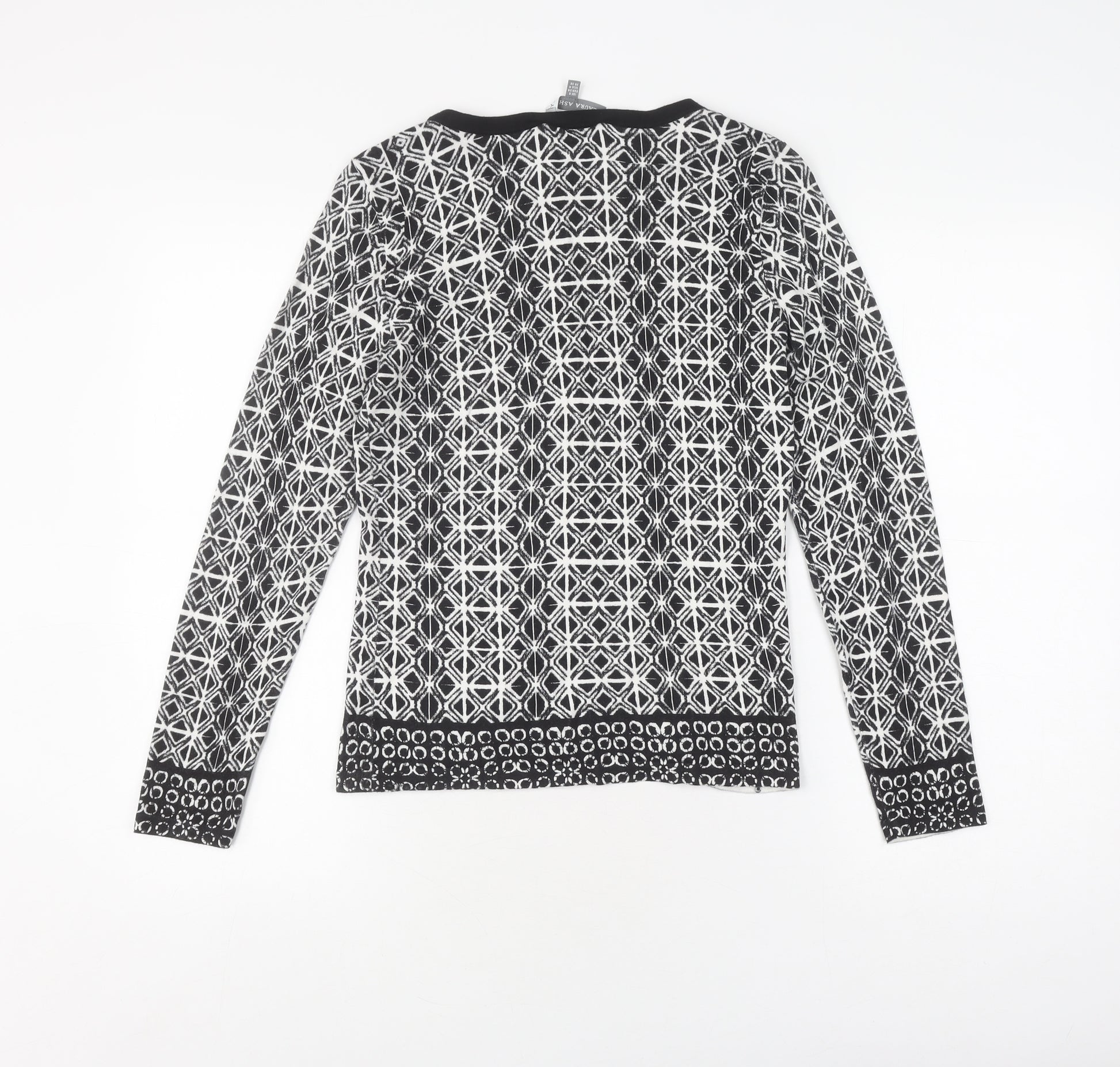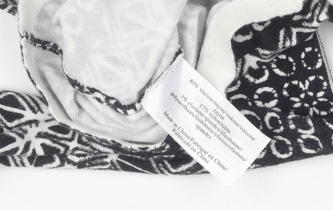Explore the blend of comfort and style with this Laura Ashley Women's Geometric Knit Jumper, expertly crafted in a versatile black and white palette. Designed for the fashion-forward woman, it features a contemporary geometric pattern that adds a chic twist to your casual wardrobe. The pullover style, combined with a round neckline, offers a timeless look that is perfect for a range of casual settings. Made from high-quality fabric consisting of 80% Viscose, 17% Nylon, and 3% Elastane, this jumper ensures a comfortable fit that moves with you. The long sleeves add an element of warmth, making it an ideal choice for all seasons. Lightweight and machine washable, it is a practical addition to your everyday ensemble. Perfectly suited for sizes 8, this regular fit jumper is designed with the modern woman in mind, providing a flattering silhouette that pairs effortlessly with jeans or a skirt. Whether you're heading out for a casual meet-up or enjoying a relaxed day in, this jumper will keep you looking stylish. Don't miss the chance to add this stunning piece to your collection—order now!