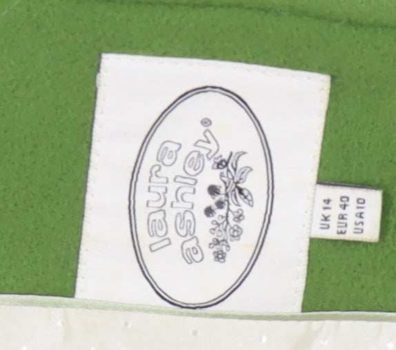 Enhance your wardrobe with this elegant Laura Ashley women's overcoat, perfect for autumn and winter seasons. This stunning green coat, made from a luxurious wool blend, offers excellent comfort and style. The interior is lined with soft polyester, ensuring added warmth against the chill. Crafted for a regular fit, this coat is designed with a long silhouette, perfect for covering winter attire. The button closure adds a classic touch, while the rich green hue brings a vibrant pop of colour to your outerwear collection. This coat is ideal for any occasion, whether you're commuting to work or enjoying a casual day out. The coat's features include a full lining and a button accent, enhancing both its aesthetic and functional appeal. Designed with long sleeves, it's tailored to provide ample protection against the cold. Although the coat is preowned, it remains in excellent condition, showing no visible signs of wear or damage. This Laura Ashley overcoat delivers timeless sophistication, making it a versatile addition to any sophisticated wardrobe. Grab this stylish coat for an unbeatable price and step into the colder months with confidence and flair.
