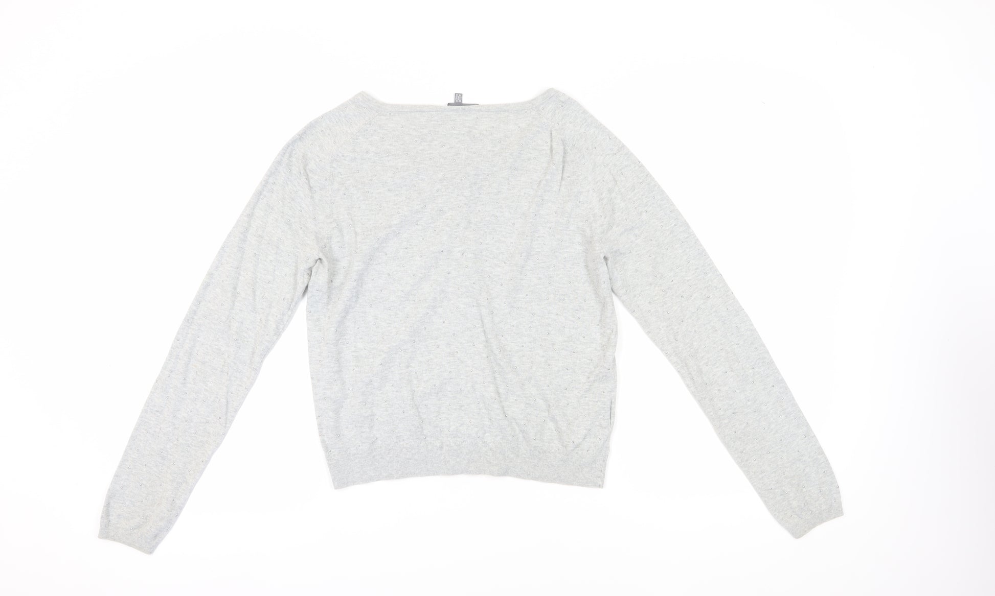 Marks and Spencer Womens Grey V-Neck Glitter Knit Jumper Size 14