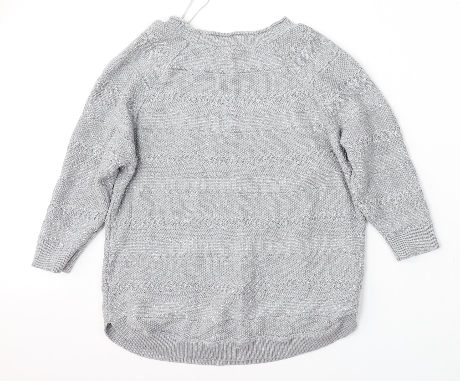 Womens Grey Round Neck Acrylic Pullover Jumper Size 14