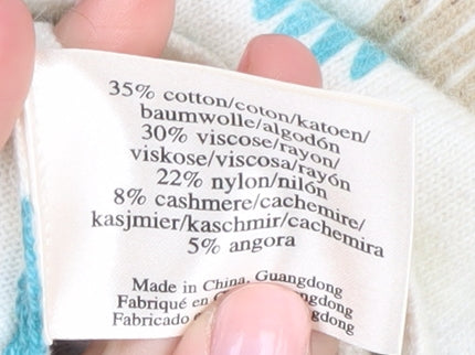 Embrace the charm of classic style with this stunning Laura Ashley cardigan. Crafted in a delightful geometric pattern, this multicoloured cardigan is an exquisite addition to your wardrobe. Designed for women, it features a regular fit that flatters your silhouette, while the 3/4 sleeves and crew neck make it perfect for casual settings. Made from a luxurious blend of cotton, viscose, nylon, cashmere, and angora, this cardigan is as comfortable as it is stylish. The tight-knit fabric feels soft against the skin, providing warmth and comfort for all seasons. The button accents add a touch of elegance to the design, making it a versatile piece for any occasion. In excellent condition and gently used, this cardigan shows no signs of wear, ensuring you look fresh and fabulous. The intricate detailing and quality craftsmanship make it a must-have for those who appreciate timeless fashion. Whether you're dressing up for a day out or keeping it casual, this Laura Ashley cardigan is the ideal choice. Attractively priced at £15.75, it's a savvy investment for any style-conscious individual. Explore the world of Laura Ashley fashion with this captivating piece and elevate your daily outfits to new heights.