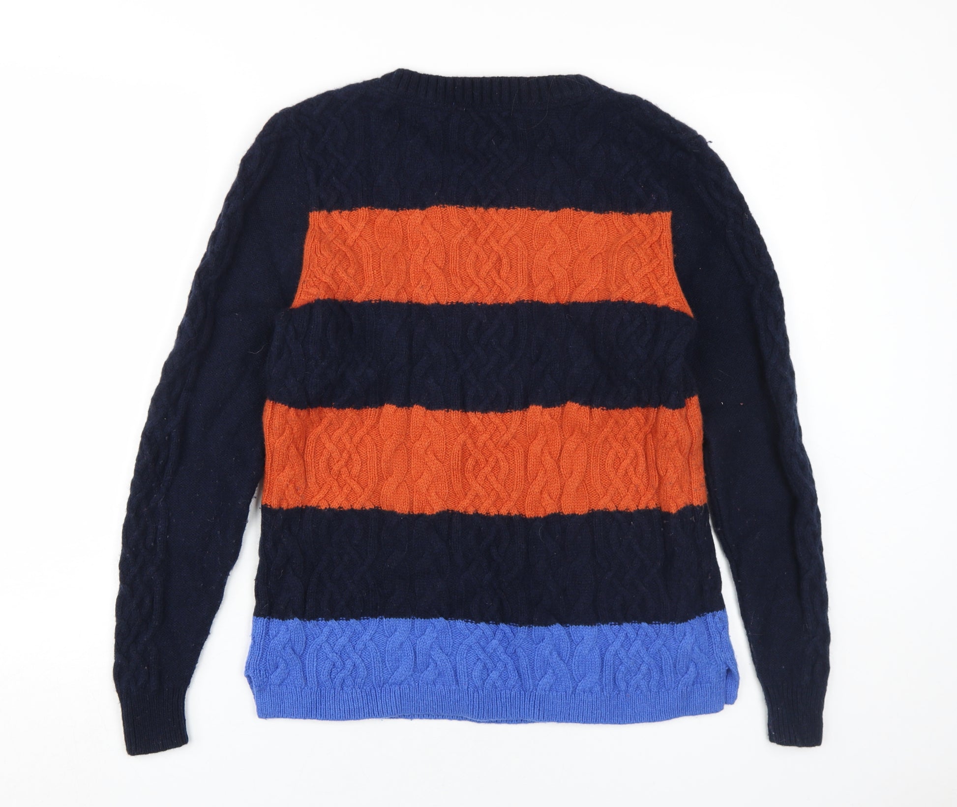 Introducing the Laura Ashley Women's Multicoloured Cable-Knit Jumper in a size 14, a chic and vibrant addition to any wardrobe. This exquisite pullover combines classic style with modern flair, featuring a striking striped pattern that effortlessly catches the eye. Crafted for the discerning woman, it boasts a crew neckline and long sleeves, creating a warm and comfortable fit that is perfect for autumn and winter seasons. The jumper is made from a luxurious blend of materials, including 60% wool, 30% nylon, and 10% silk, ensuring a soft touch and durable wear. Its heavyweight design provides optimal insulation against the cold, making it an ideal choice for casual outings. The cable-knit style adds texture and depth, enhancing the jumper’s overall aesthetic. This versatile piece suits a variety of occasions, embodying the classic theme of Laura Ashley designs. With no visible signs of wear, this jumper is in excellent condition, promising quality and elegance. Elevate your wardrobe with the timeless appeal of this Laura Ashley jumper, perfect for those who appreciate sophisticated style with a playful twist.