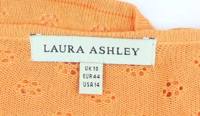 Elevate your wardrobe with this striking Laura Ashley Women's Cardigan in a vibrant orange hue, perfect for adding a pop of colour to any ensemble. Designed for comfort and style, this long sleeve, open-knit piece is ideal for layering over casual or formal outfits. Crafted from soft, breathable viscose, it ensures comfort throughout the day. This cardigan is impeccably tailored for women in a size 18, offering a flattering fit without compromising on style. Perfect for versatility, this women's cardigan can be dressed up or down; pair it with jeans for a casual look or drape it over a dress for an elegant evening ensemble. Designed without any patterns, it brings a modern, minimalist touch to your attire. Despite its light, airy knit style, it provides excellent coverage, making it suitable for transitional weather. This garment is in excellent condition, although it is not new with tags, it shows no visible defects, ensuring you a quality piece. Add this Laura Ashley cardigan to your collection and enjoy its timeless charm and versatility for years to come.