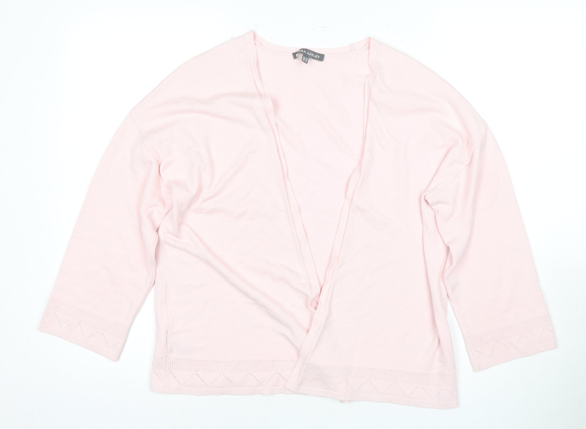Elevate your wardrobe with this elegant Laura Ashley cardigan. Designed in a charming shade of pink, this women's cardigan is a versatile piece ideal for casual occasions and suitable for both autumn and winter seasons. The relaxed fit and 3/4 sleeves provide comfort and style, making it easy to pair with a variety of outfits.Crafted with a blend of polyester, viscose, and wool, this cardigan offers warmth and durability. The open style allows for easy layering over blouses or tops, adding a touch of sophistication to your look. While there is a small visible mark, the overall condition is good, ensuring it remains a valuable addition to your collection.Perfect for laid-back settings, this cardigan showcases a simple yet classic design. It features an absence of pattern, making it a straightforward choice for those who prefer minimalistic fashion. With Laura Ashley's renowned quality, you can be sure this cardigan will complement your wardrobe beautifully. Don’t miss the opportunity to own this charming piece at an attractive price.